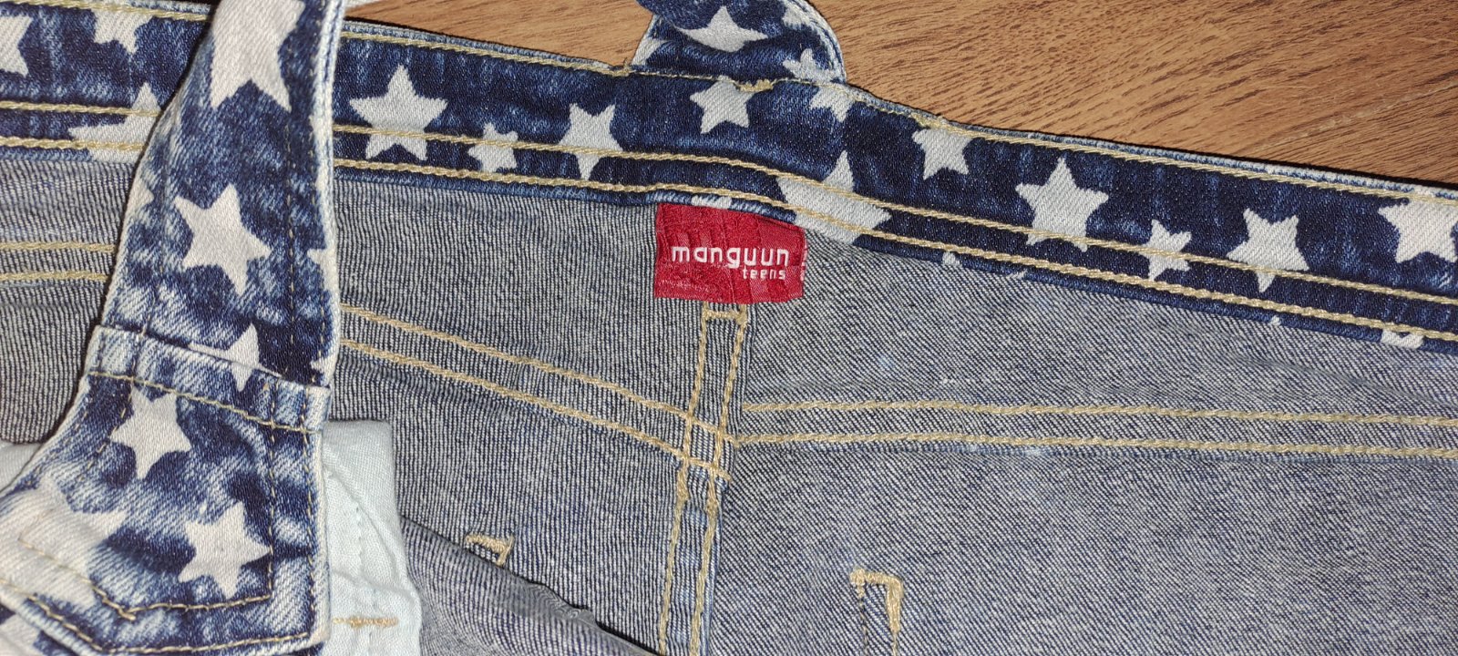 nosené, bez poškodení značka Esmara uvedená veľkosť EUR38 materiál niečo ako rifľovina, naťahuje sa šírka v páse 2x 33 cm dĺžka na boku 30 cm