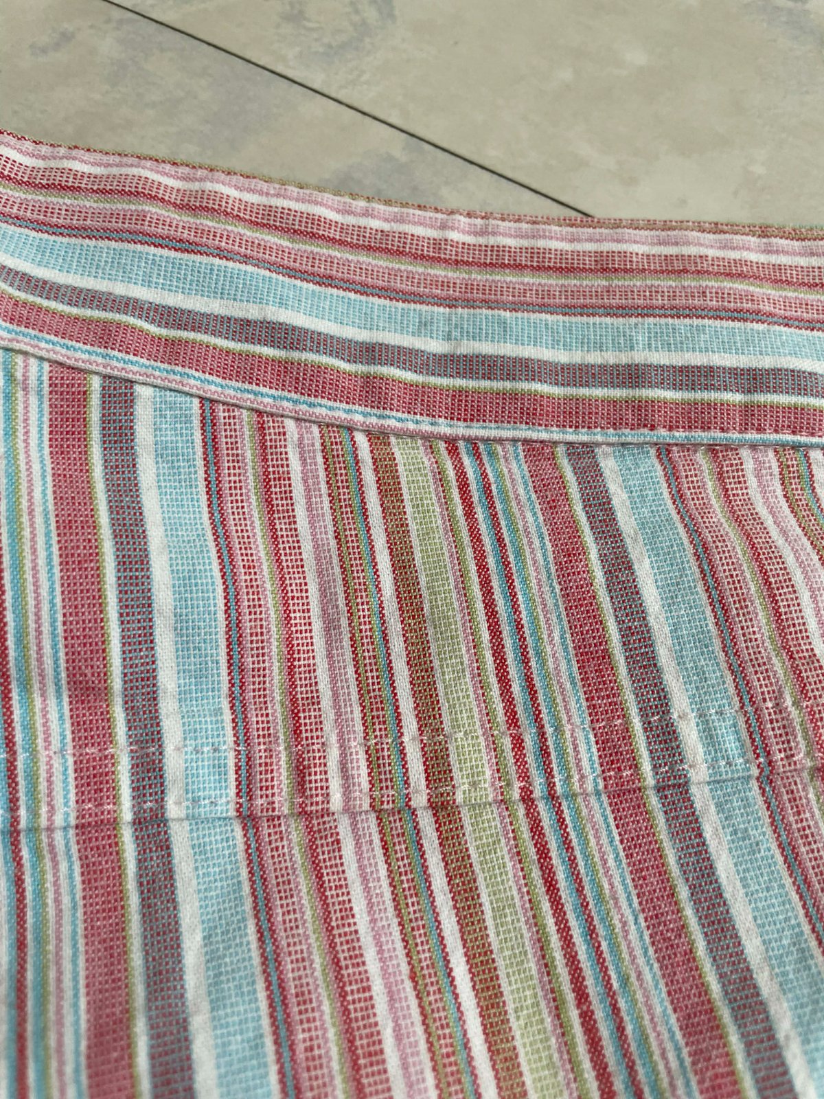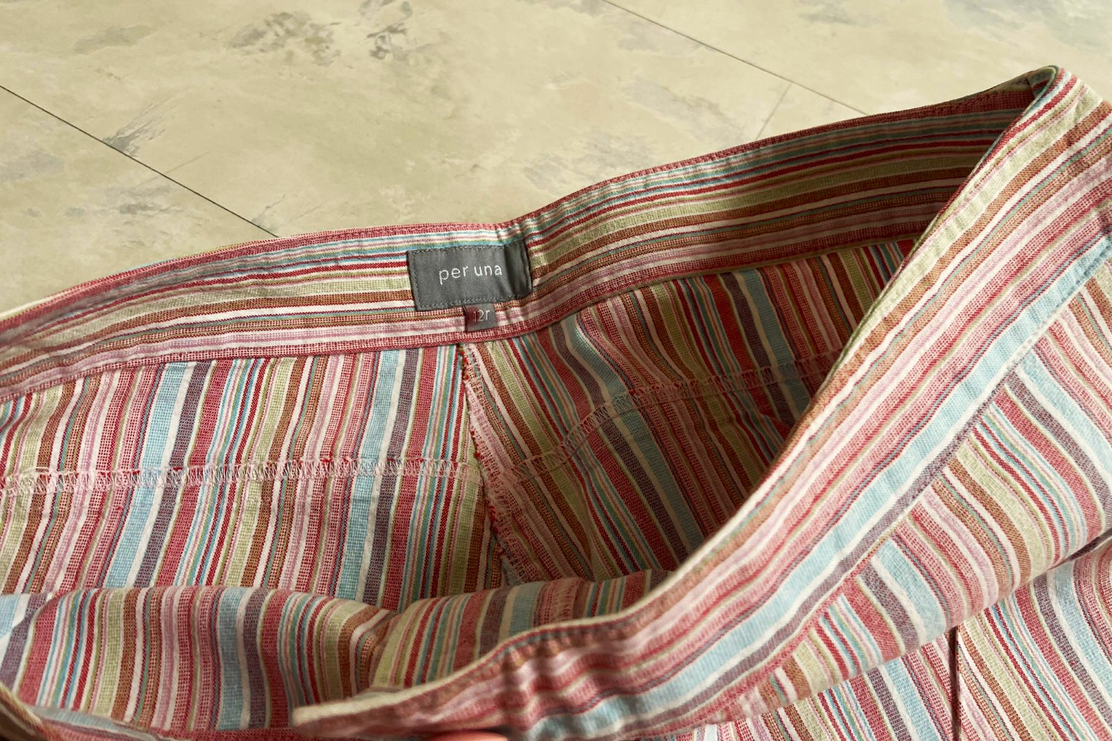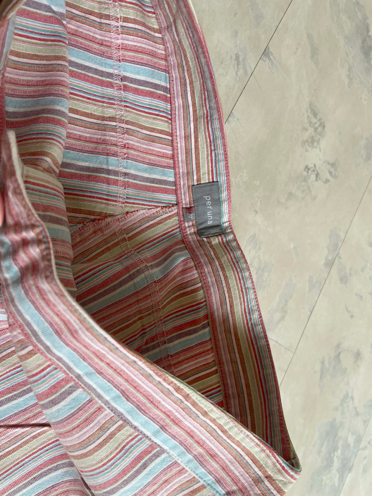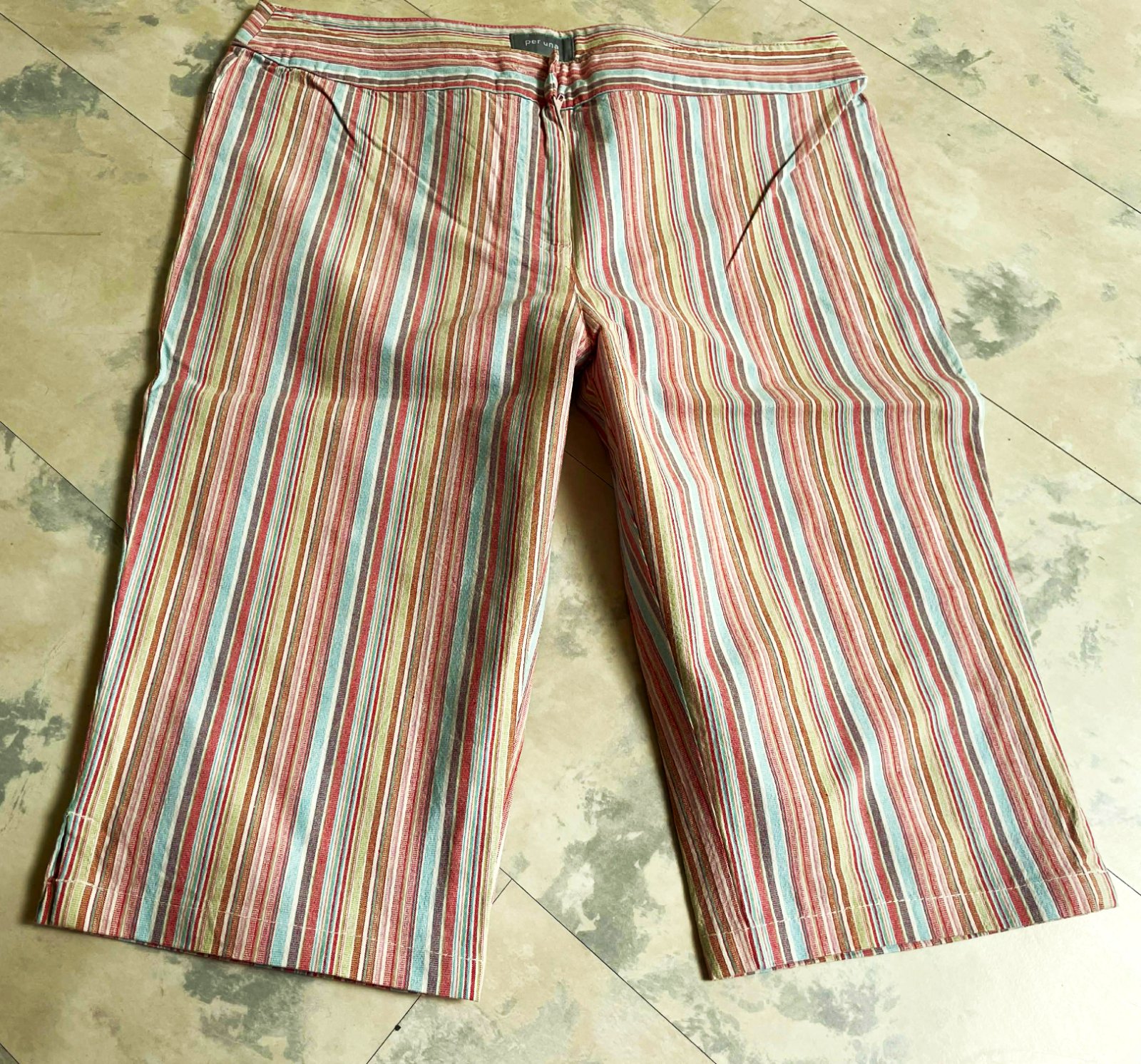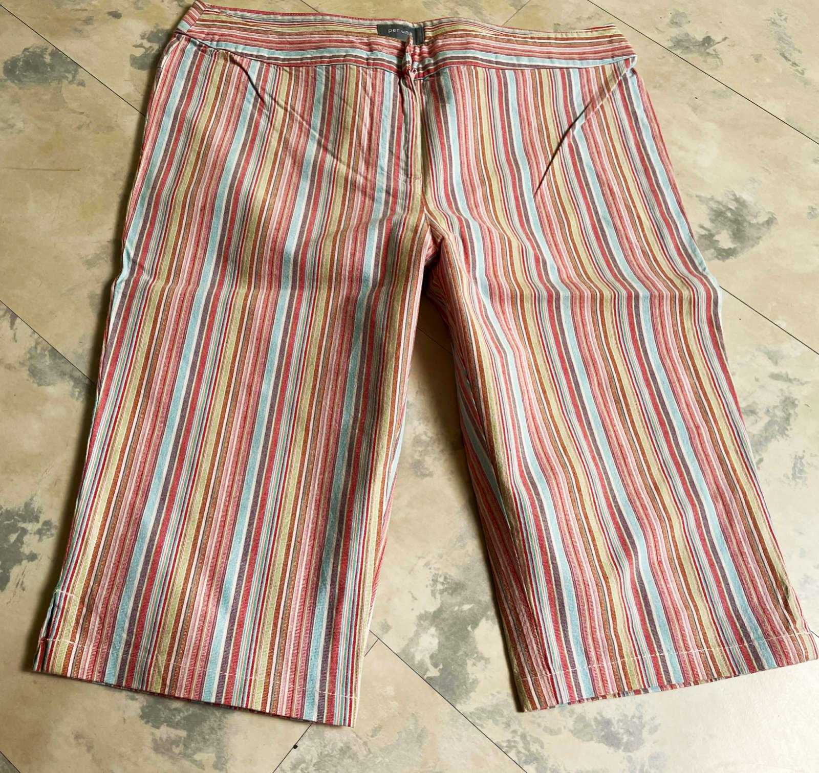 veľmi kvalitné ,obsahujú streč,na bokoch jemné rozporky,krásne jemné farby,zoštíhľujúci prúžkovaný vzor,top stav,ako nové