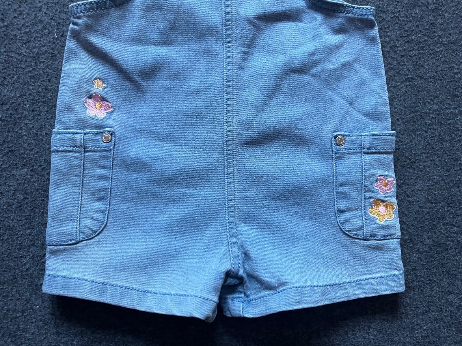 Len oprane rifľové kraťasy na traky. Veľkosť 86