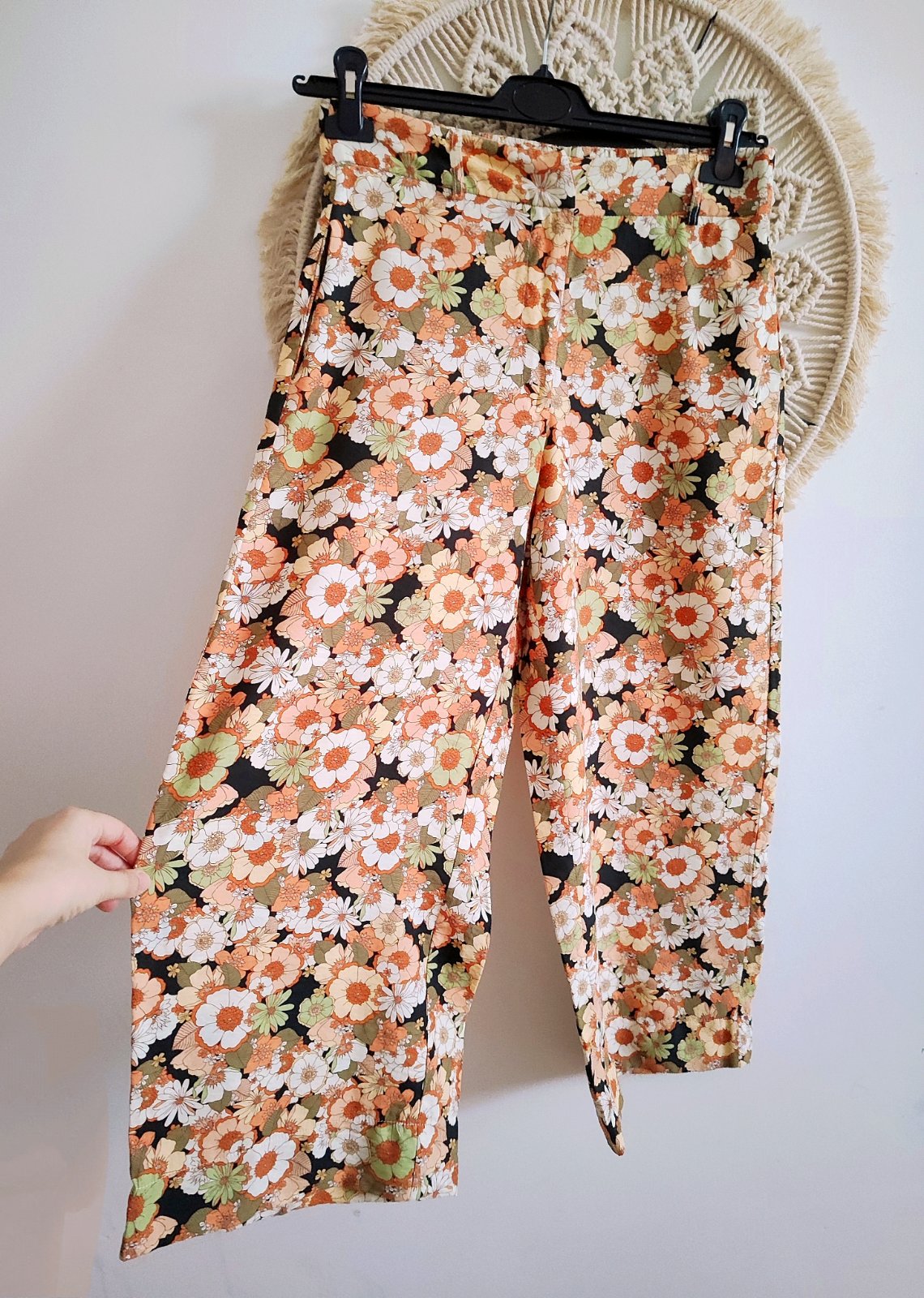 Biele tenke nohavice na leto. Prijemny lahky material, az chladivy. Vzor tropickych kvetov - farba olivova