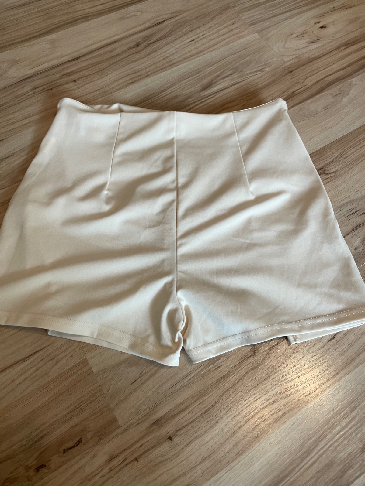 Krásne tweedové krátke nohavice, krémovej farby, veľkosť L, príjemný kvalitný materiál, zapínanie vzdadu na zips. Nohavice sú nenosené (nesadla veľkosť).