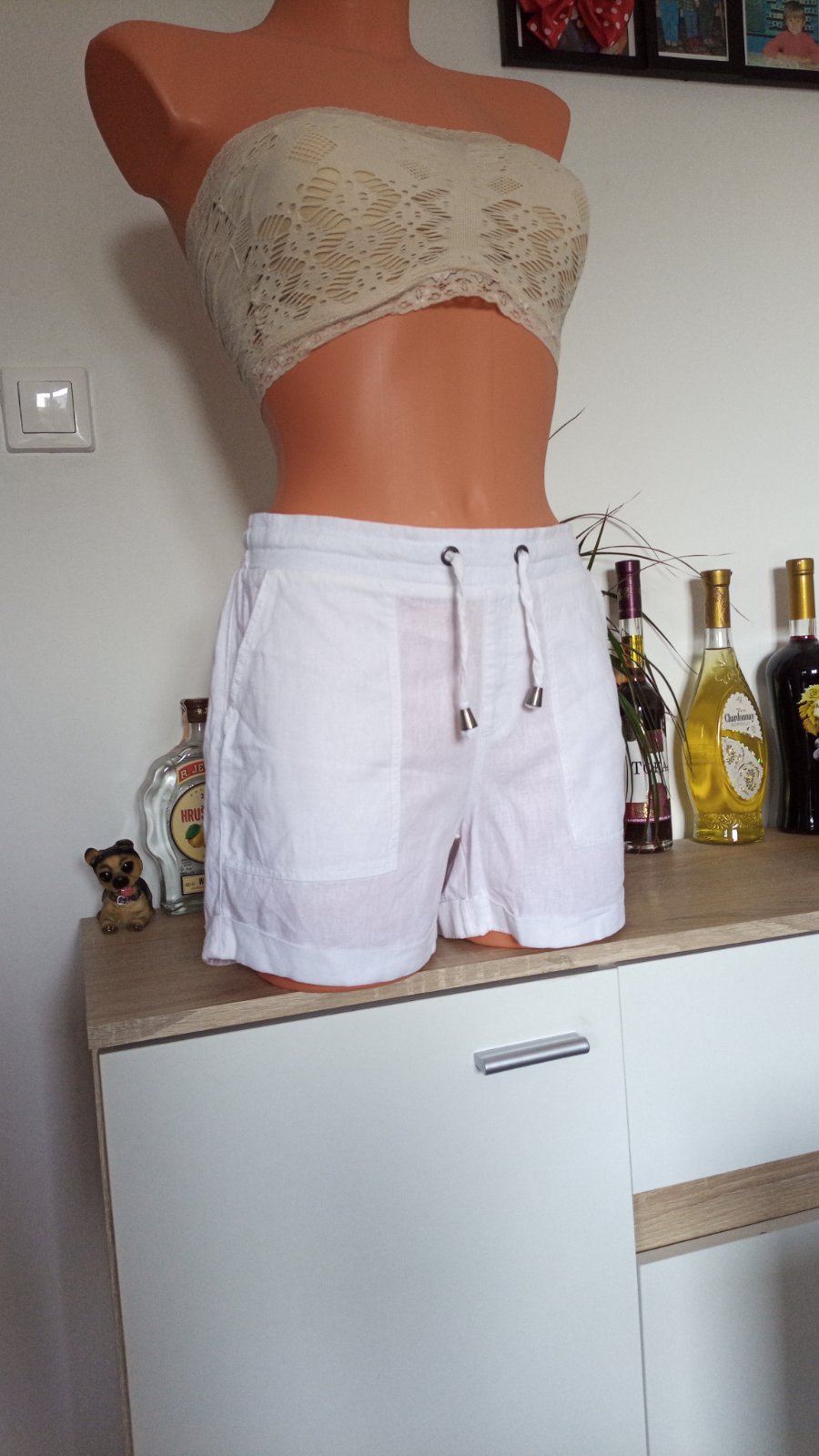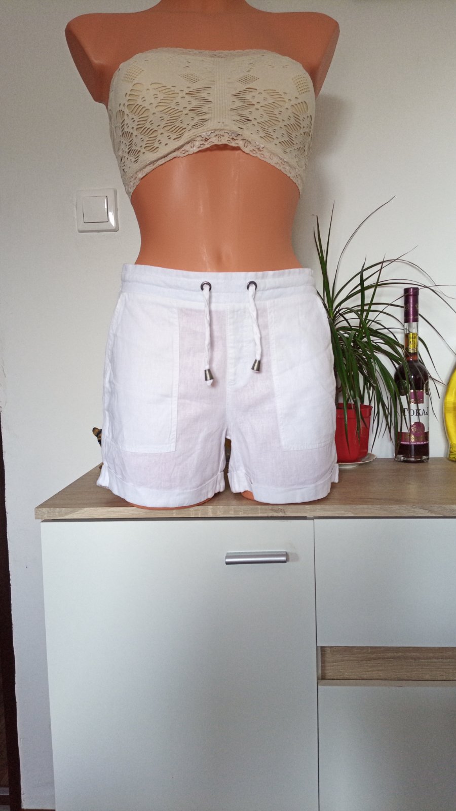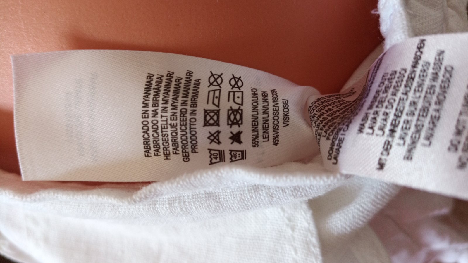 100%stav. Ľanové,vzdušné, pohodlné. 55% ľan,45% viskóza. Veľkosť udáva 36(voľný strih), ale oblečie aj 38-40,S-M