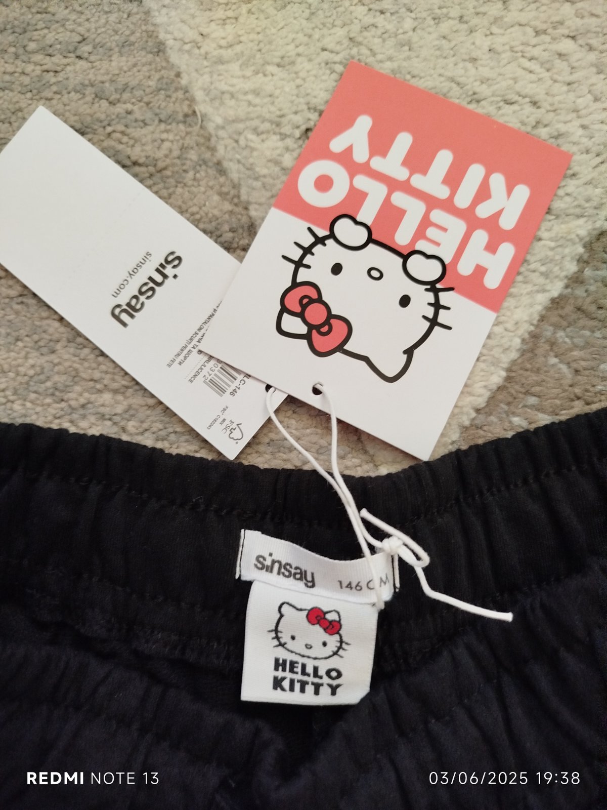 Pohodlné teplákové kraťasy Hello Kitty, veľkosť 146, značka Sinsay. Nové s visačkou, top stav. Dĺžka 30cm, pás v kľude 30cm a natiahne sa do 37cm, je na gumu. Cena + pošta do 500gr. Balné si neúčtujem 🙂