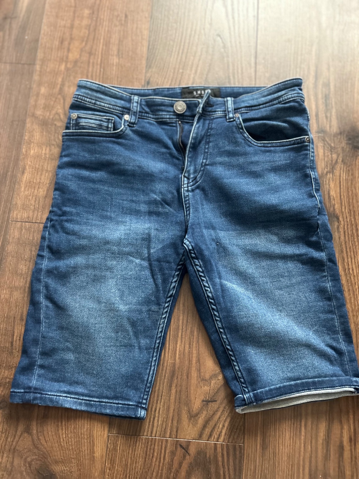 Pánske riflové kraťasy velk. 31. Dlžka 55 cm, pás 2 x 40 cm.