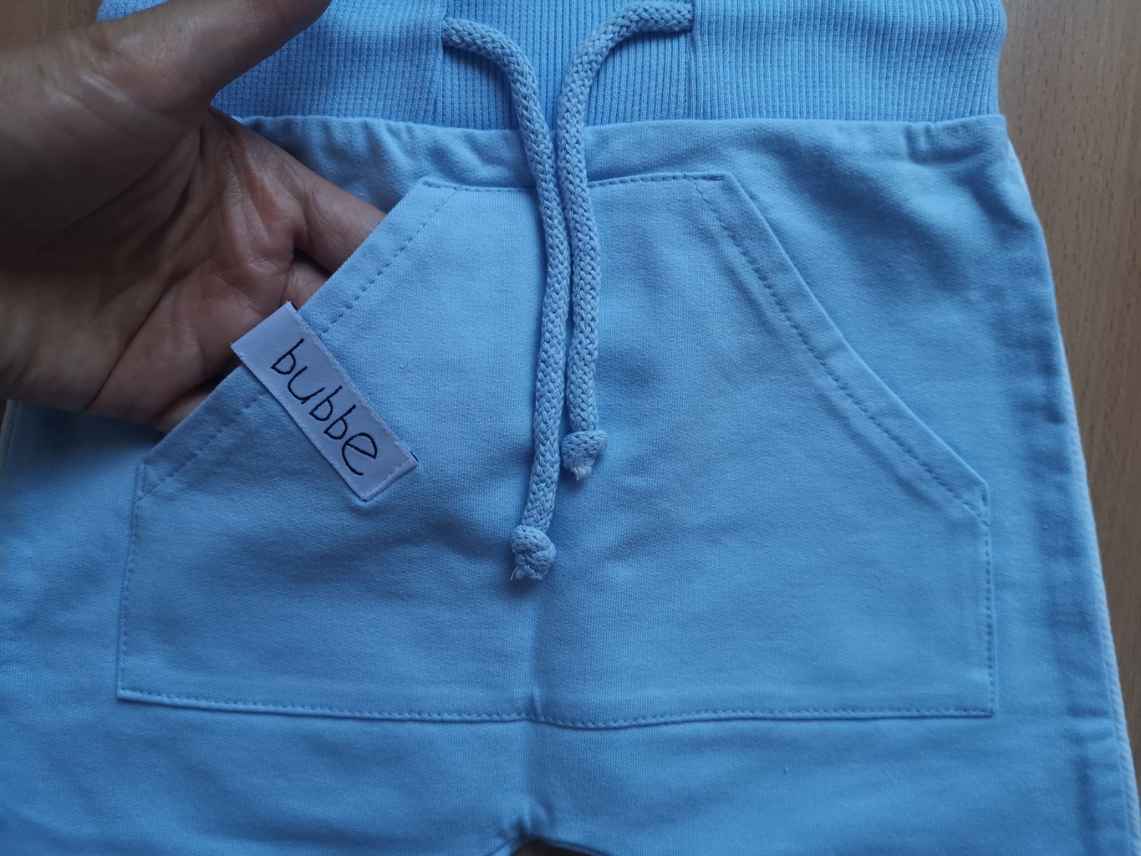 Svetlomodré šortky s klokaním vreckom v. 92/98