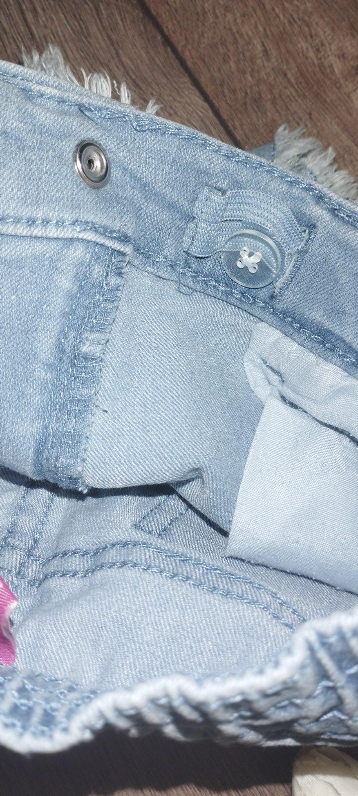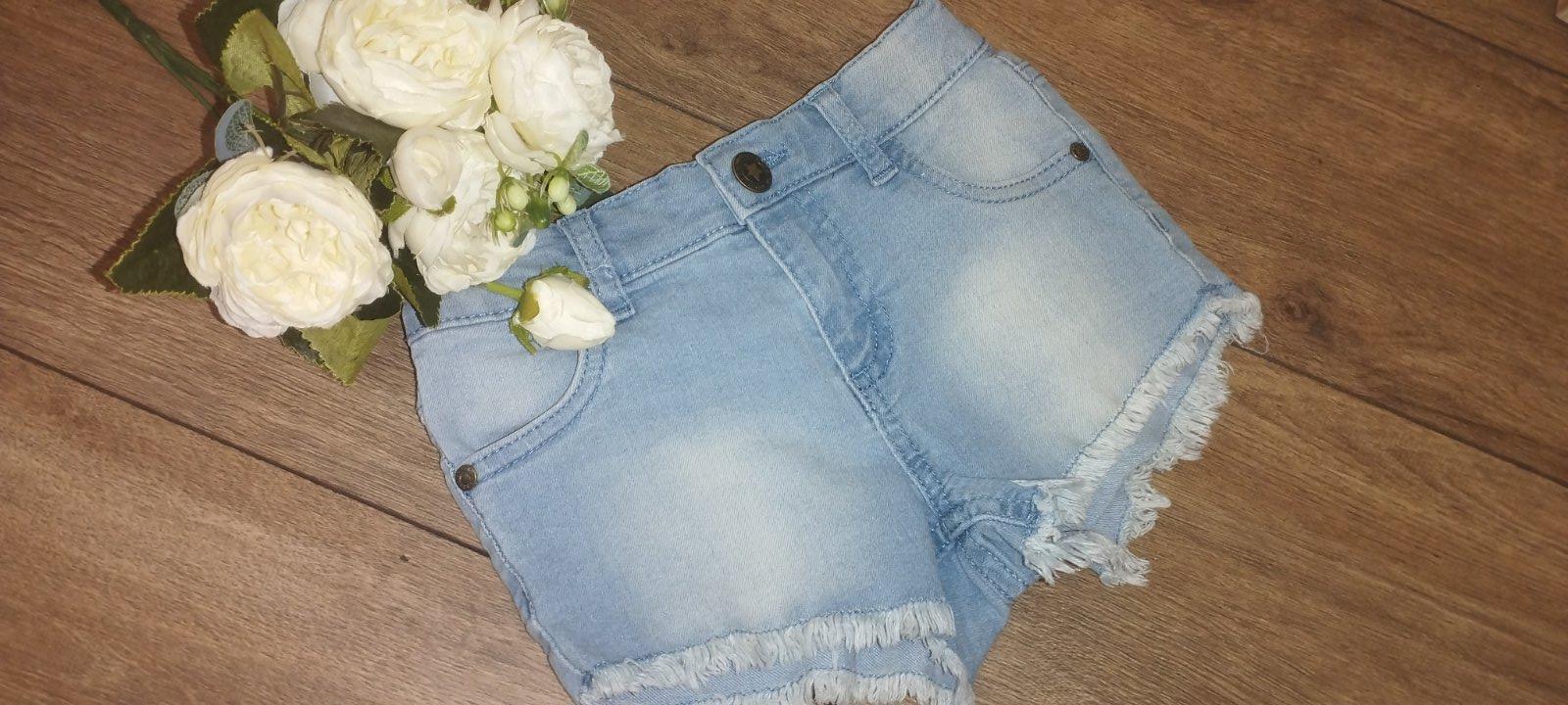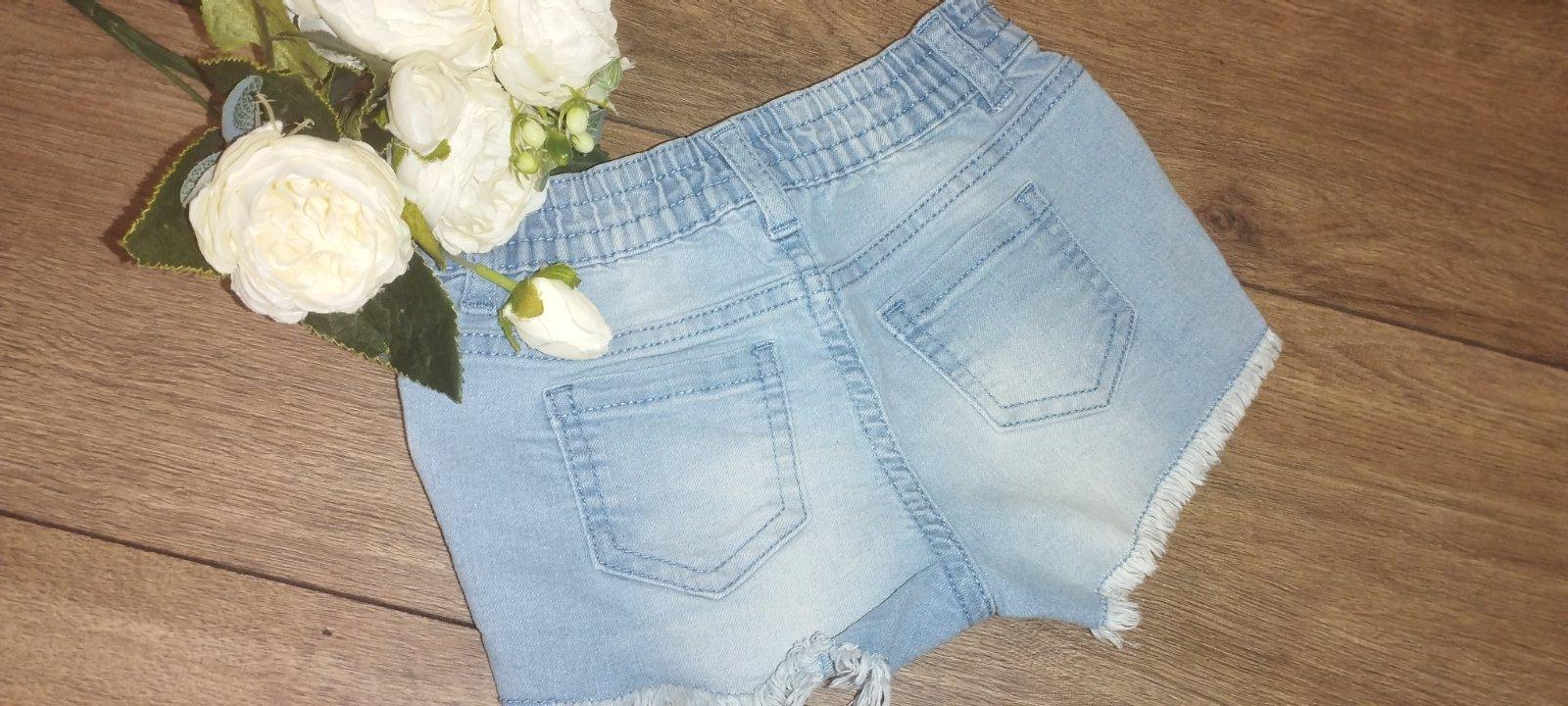 Krásne riflove kratasy, bez poškodení. Velkost 98, pás je nastavitelny.