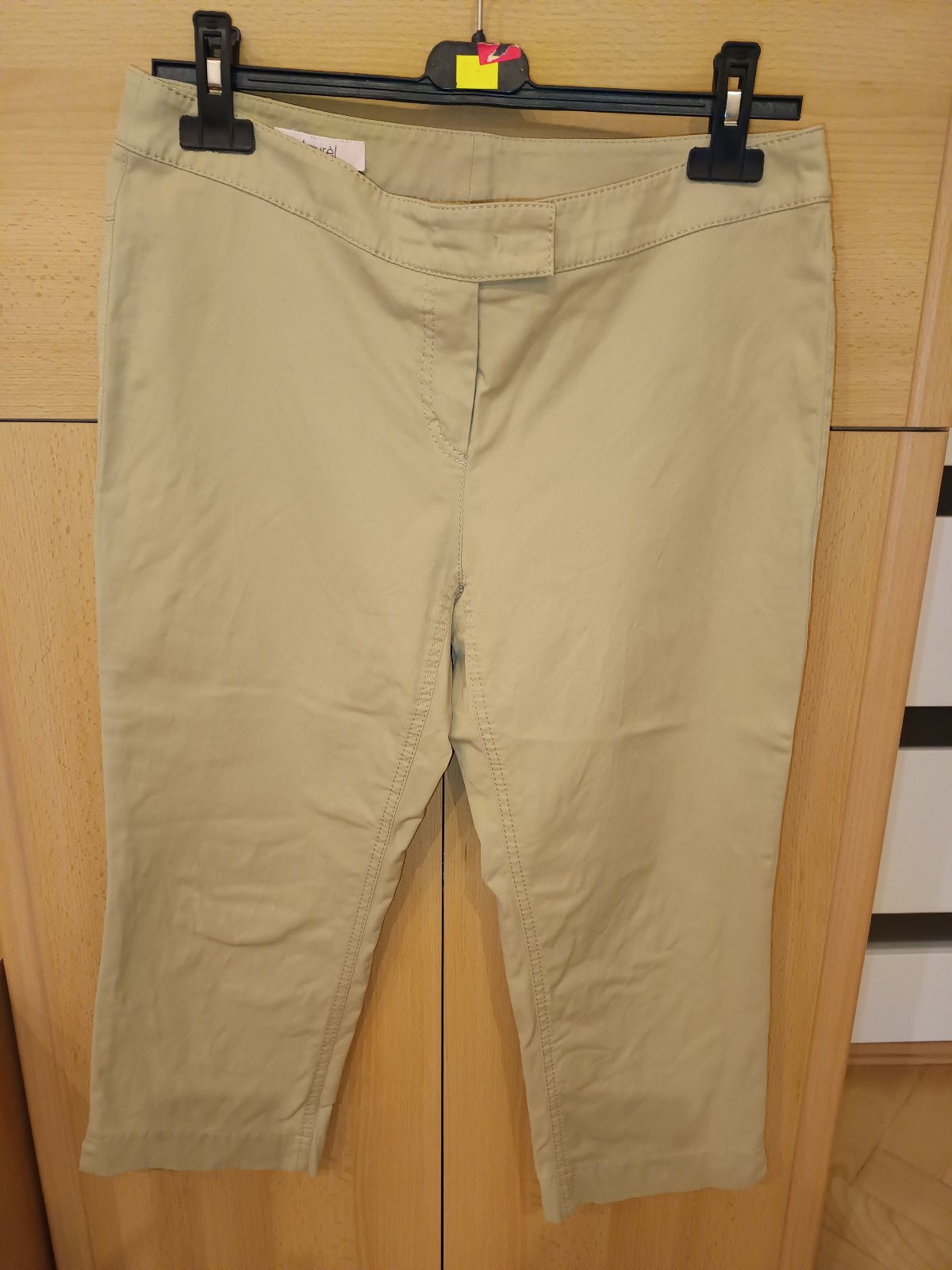 krásne 3/4 nohavice, talianska značka 40 - naša tak S, miery: pás mierne znížený 37x2, boky 46x2, cez zadok 48x2, sed vpredu 25, sed vzadu 30, dĺžka 68 cm,ľahučký materiál, príjemná smotanová farba...