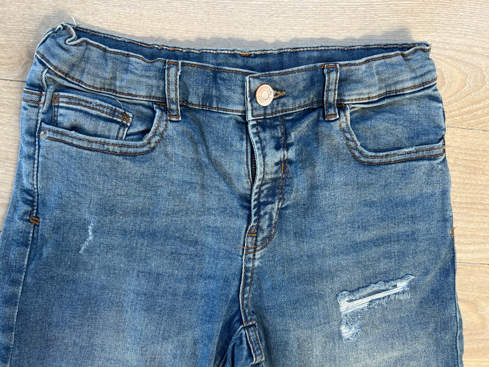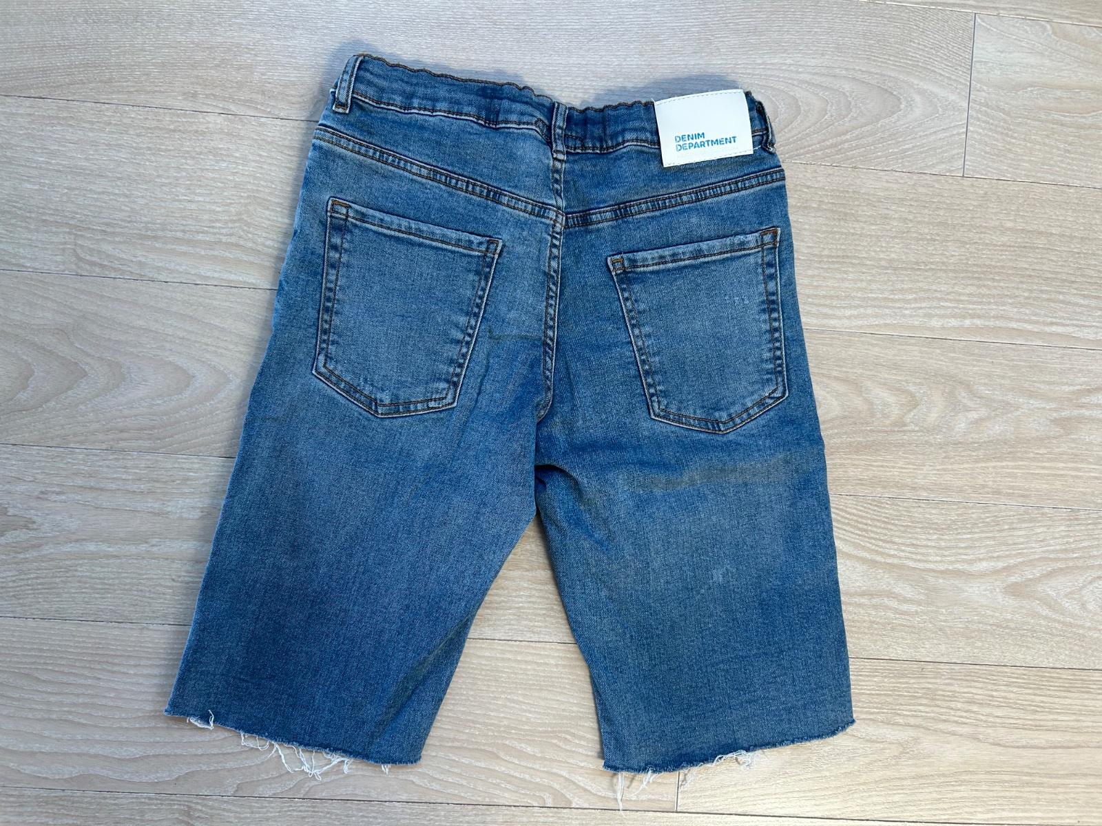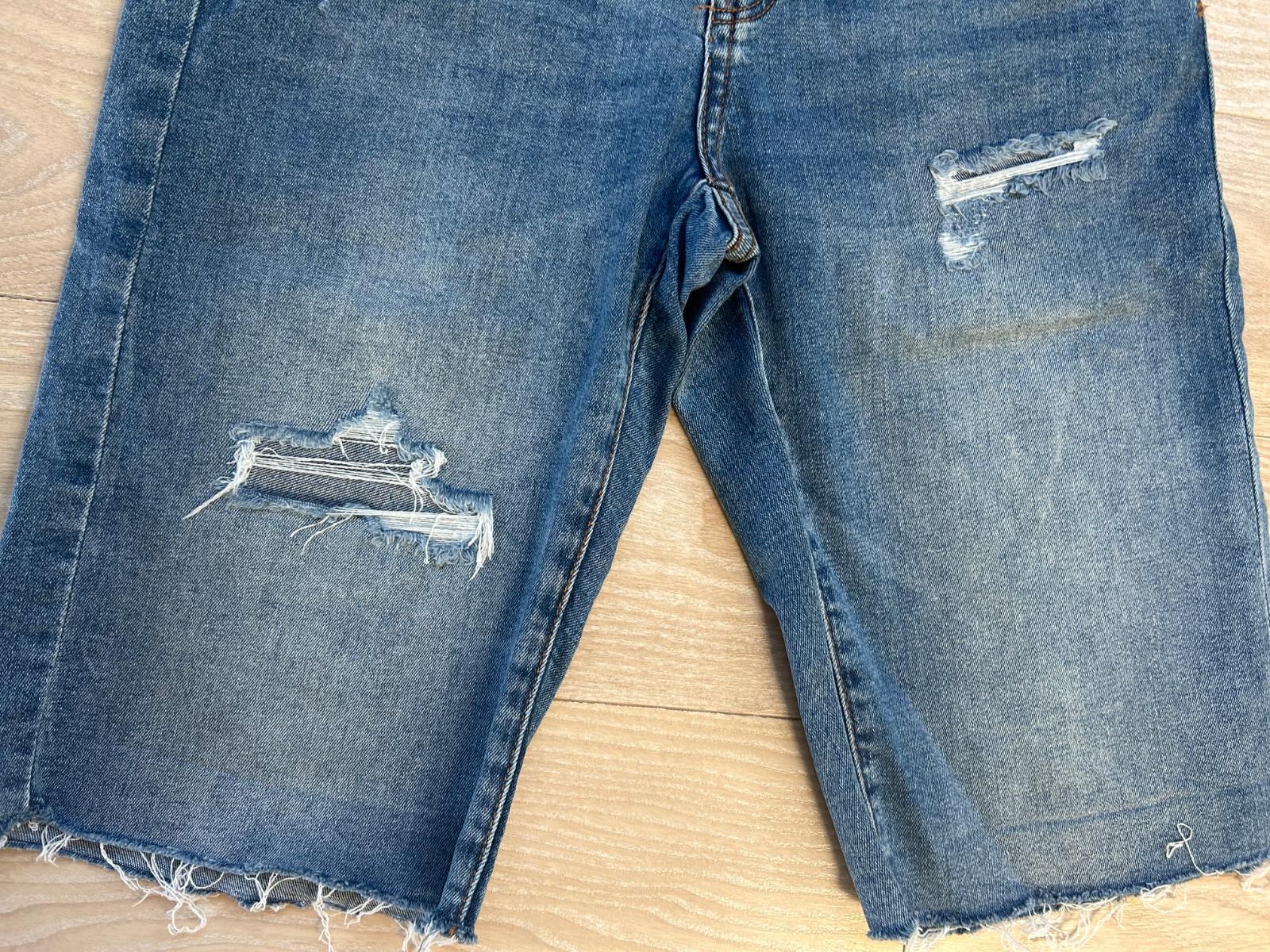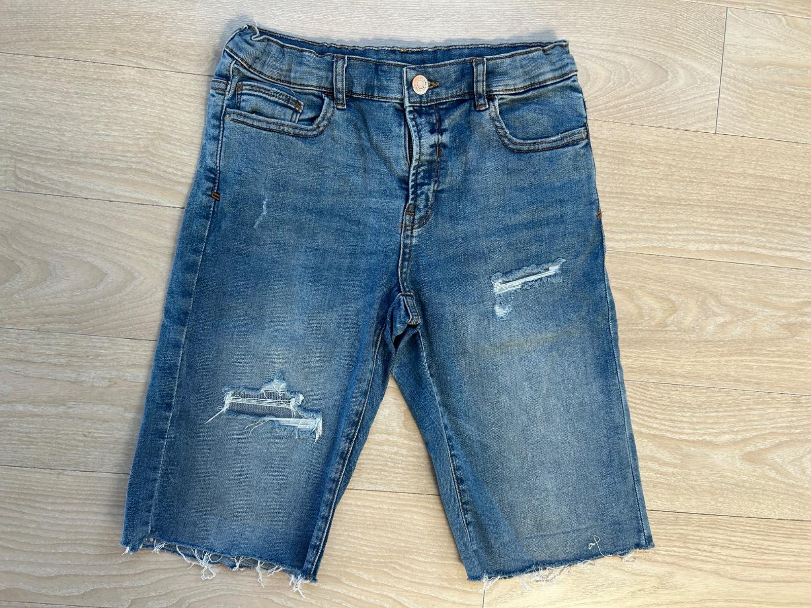 Pohodlne riflove kratasky, mierne dotrhane, v pase nastavitelne, bez vad a poskodeni, 100% stav