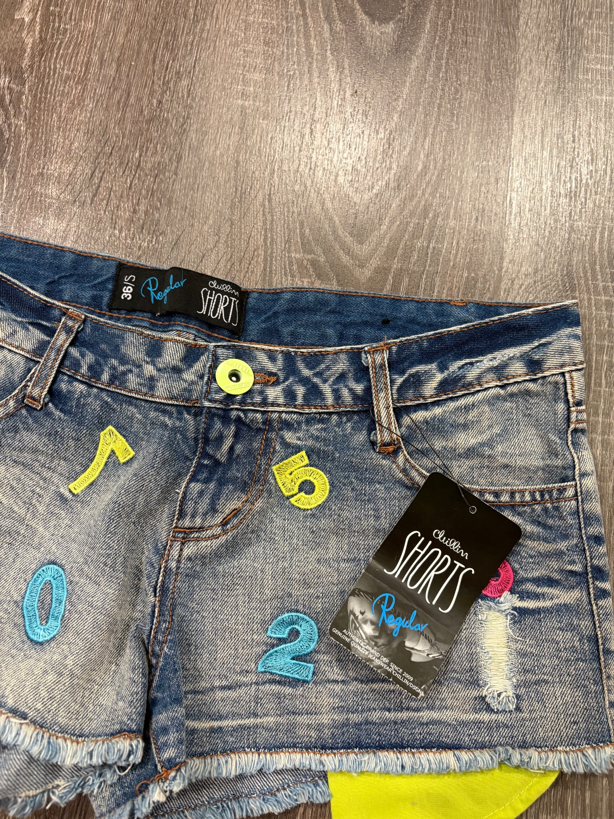 01.Chillin short regular nove štylove damske šortky,komplet s visackou,velkost S,dlzka je 21cm a sirka v pase je 40x2cm,predny sed je 18cm a zadny je 29cm