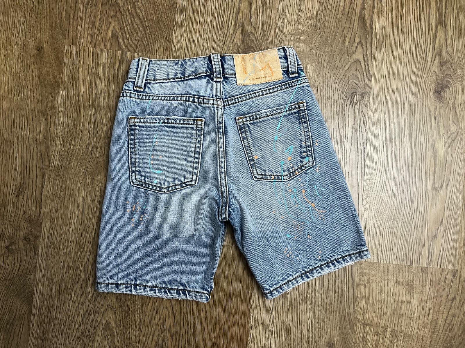 Veľmi pekný stav, oblečené párkrát, bez poškodení, dajú sa regulovať v páse, materiál - riflovina