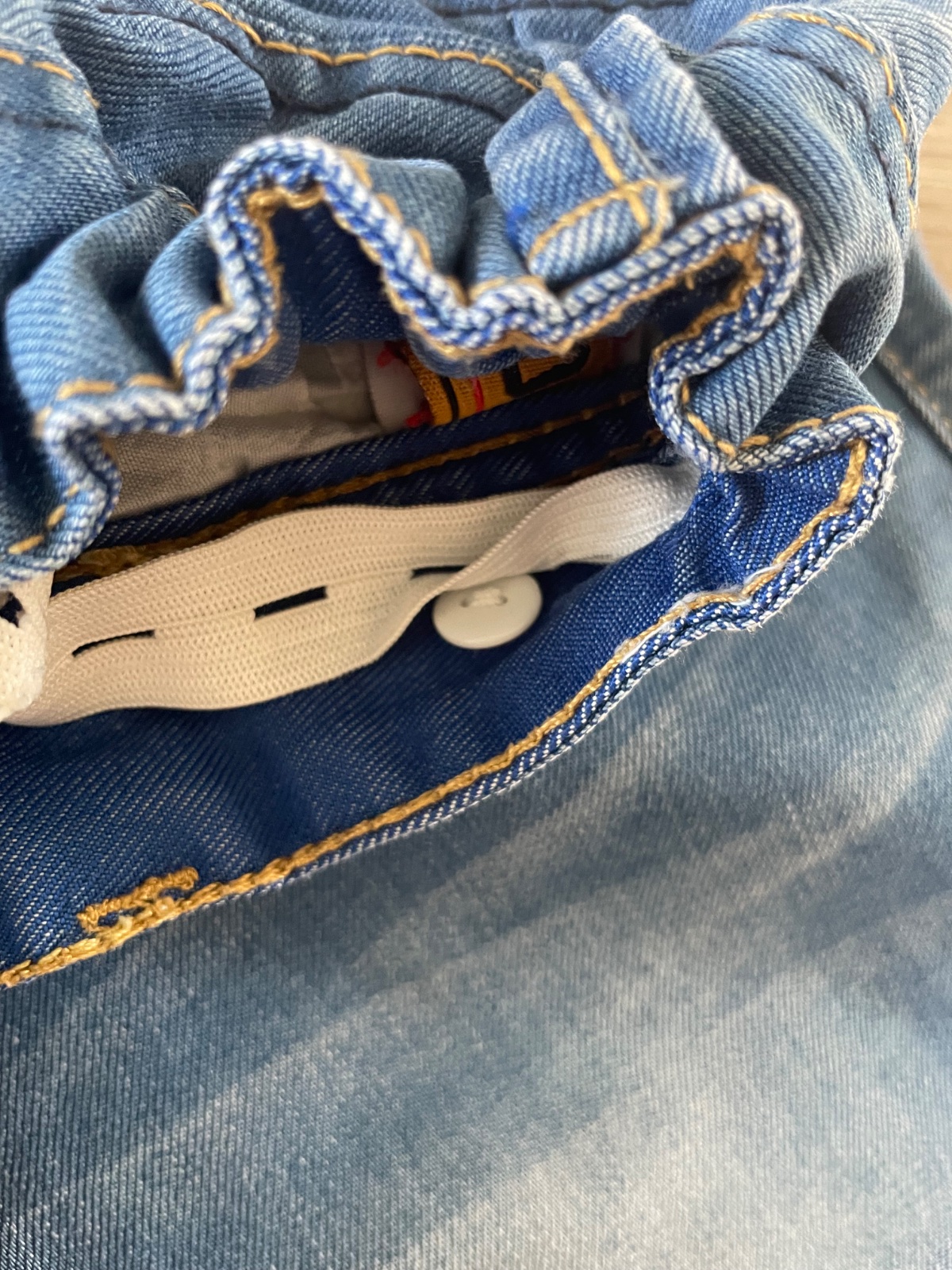 Kraťase sú nosené. Nie sú poškidené. Je to tenšia rifľovina. Dĺžka 61 cm, pás 35 cm , dá sa stiahnuť, je tam guma s gombíkmi.