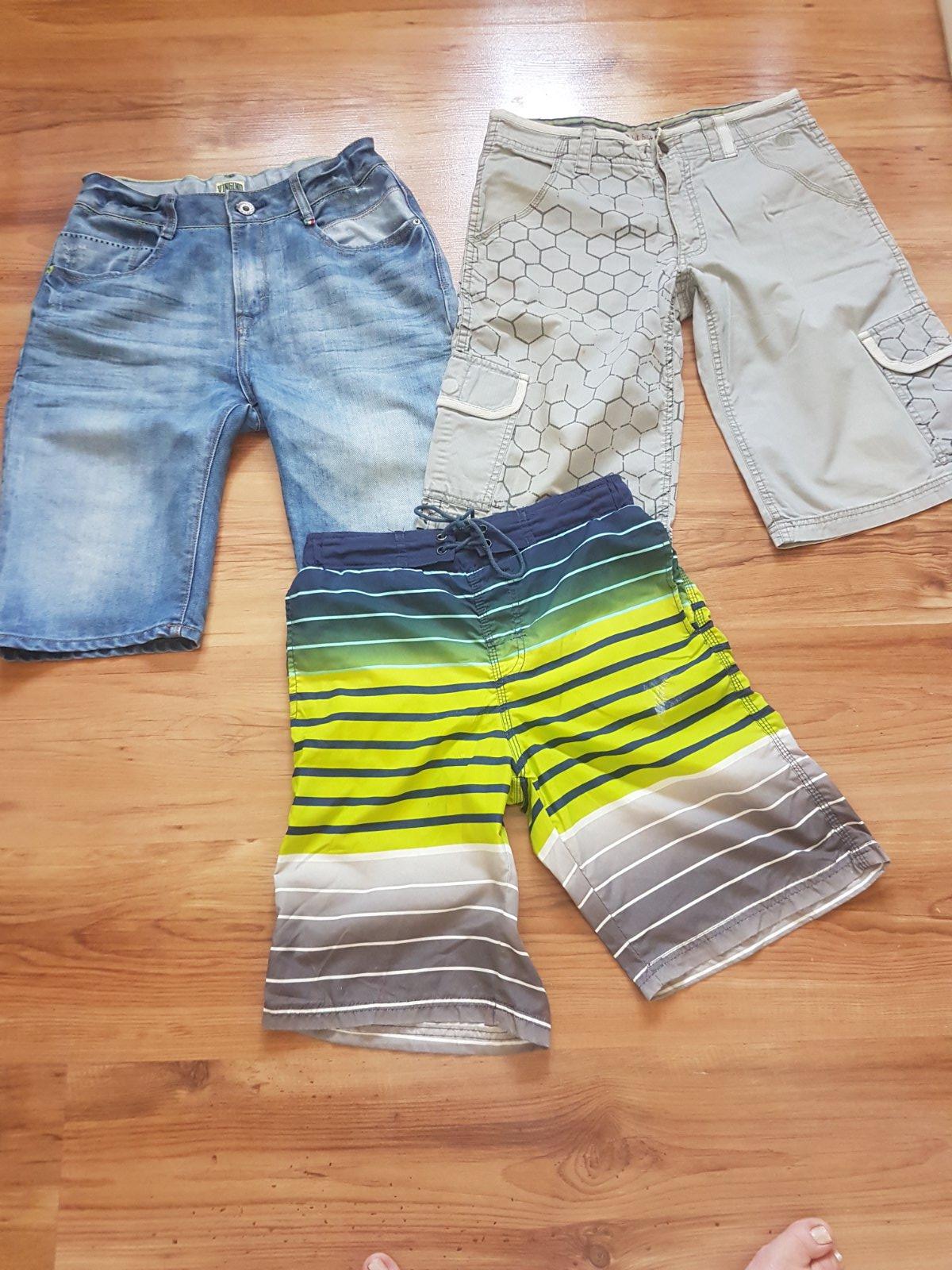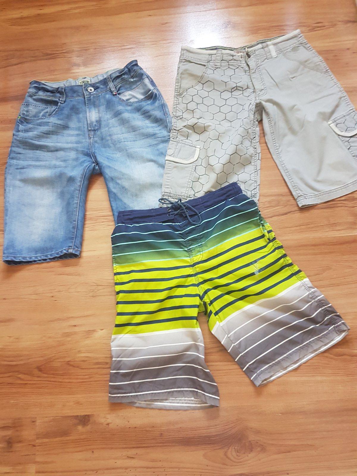 vel.164-S-ko.riflové výborný stav/už predané/,šedé dosť nosené/na donosenie/,spodné plavky/kraťasy-majú poškodenia ale ponosiť niekde na záhradu,po dome sa ešte dajú-tie súpodšité sieťkou.cena spolu 3,5