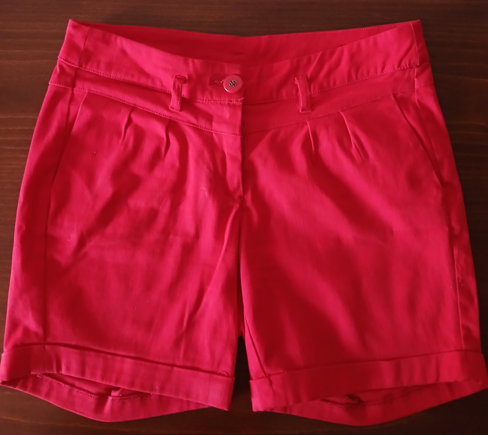 Predám krátke dámske nohavicefarby jasnočervenej , nosené a vo veľmi dobrom stave. Zn. Flame, veľkosť č. 36. Zapínanie na zips a gombík, po bokoch a na zadnej časti sú vrecká. Zloženie je 97% bavlna a 3% elastan.