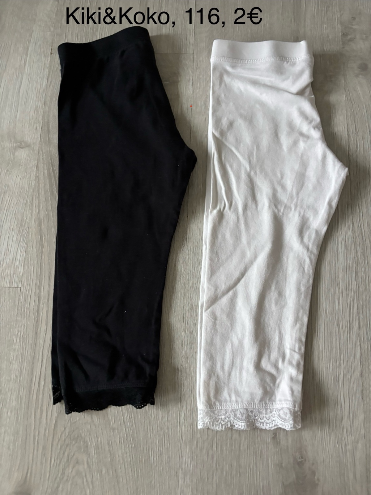 Dievčenské trištvrťáky z elastickej tenučkej rifloviny, veľkosť 116, veľmi dobrý stav. Dĺžka 50 cm, boky 35 cm x 2, pás 52 - 60 cm.
