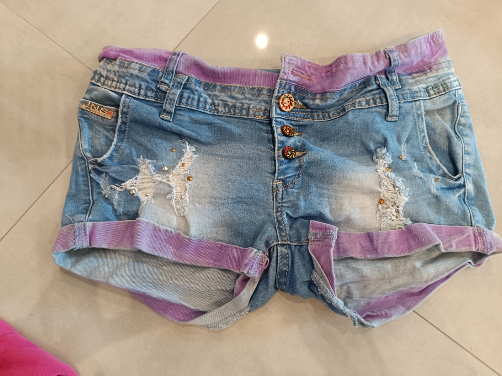 Dámske rifľové kraťasy ... s vreckami ... s farebnými gombíkmi ... značka: ONLY ... veľ. 30 - dlžka 35 cm, šírka pás 40 cm