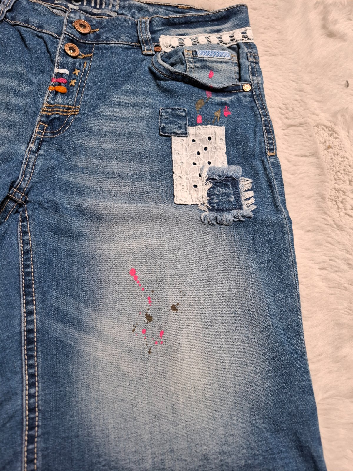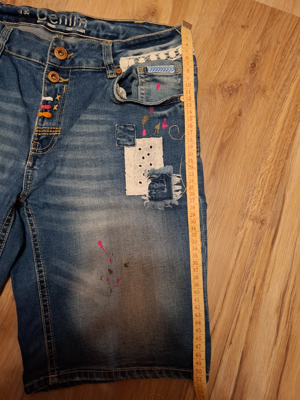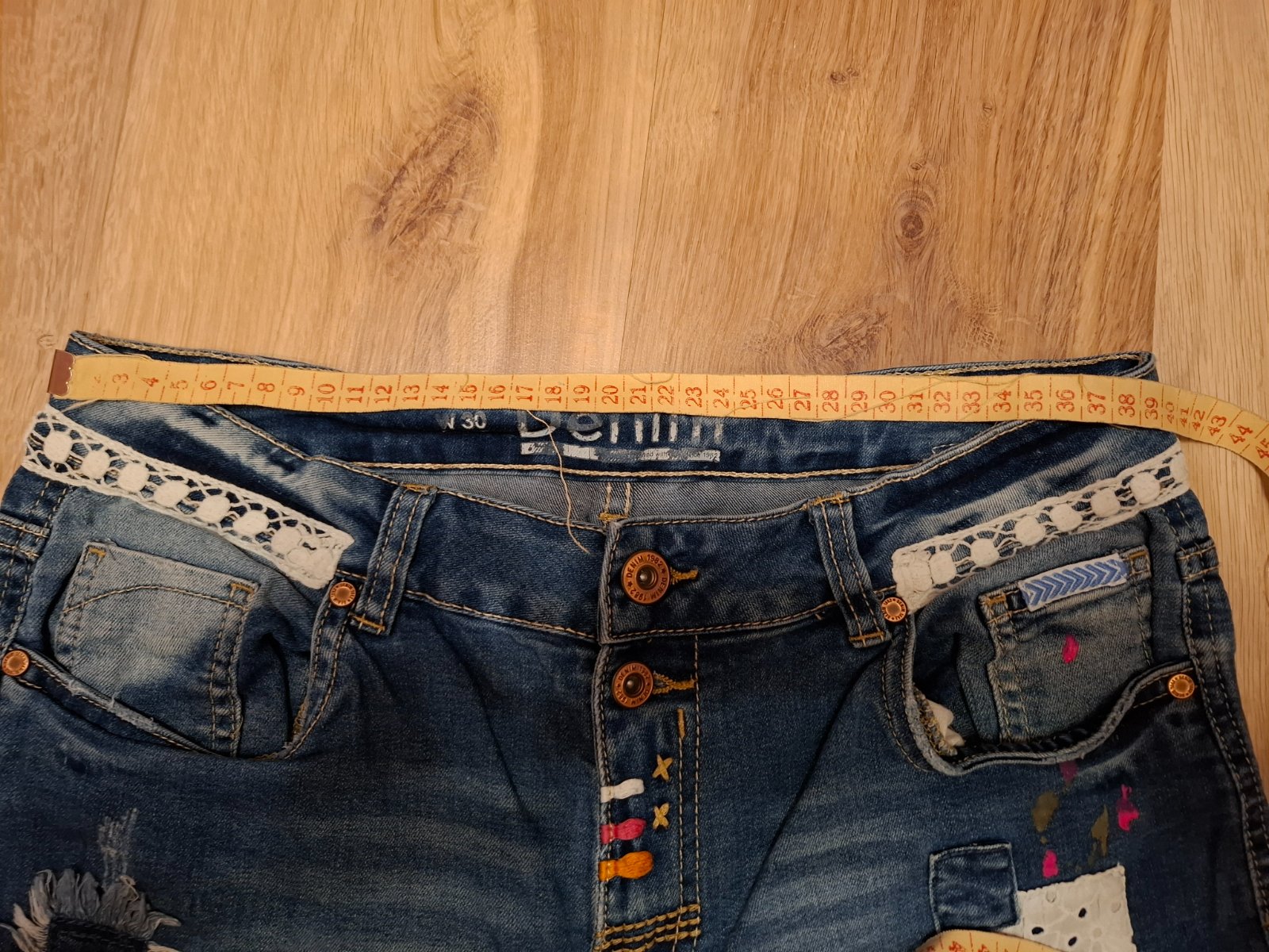 Nosené, ale bez poškodenia, veľkosť asi L (W30), zn. Takko, cena 4,50 Eur