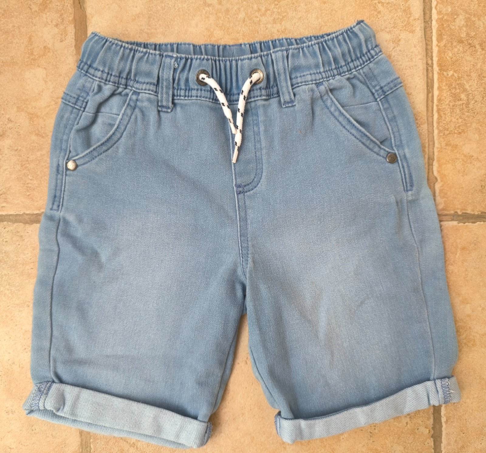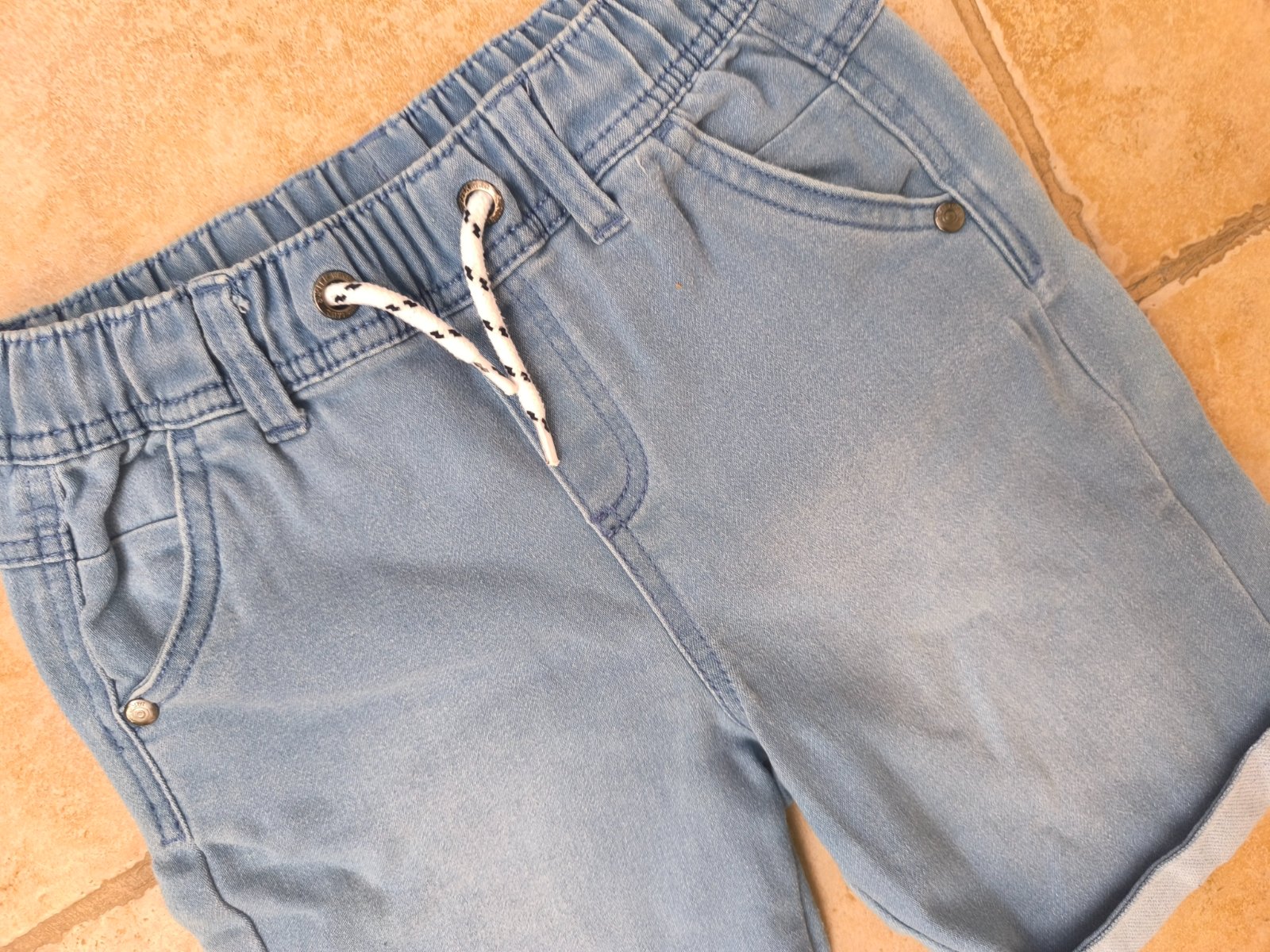 Kraťasy nosené, trochu vyblednutá farba inak bez závad. Šírka v páse 26 cm, celková dĺžka 37 cm.