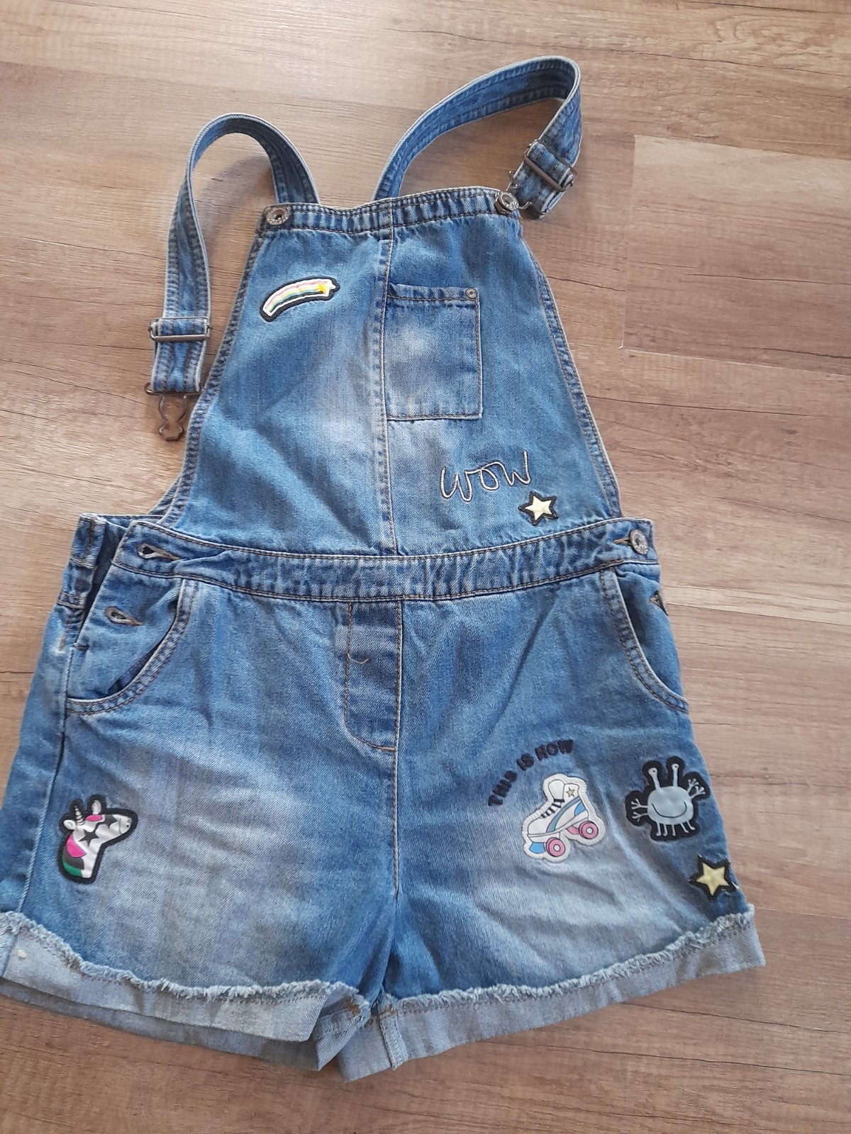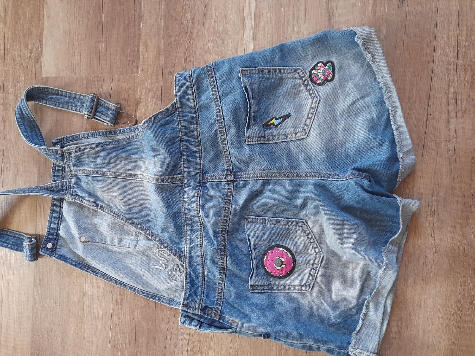 Dievčenské rifľové kraťase, pre 11 - 12 r., šúchaný dizajn, v perfektnom stave. Materiál: bavlna 62% + polyester 38% obvod pása v kľude: 34 x 2 cm - po obvode je gumička + 2 gombíky celková dĺžka...