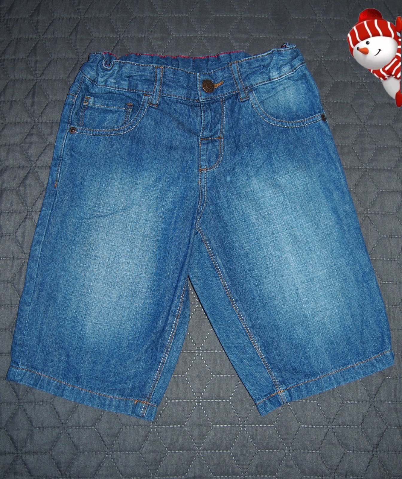 Veľmi dobrý stav! Chlapčenské rifľové kraťasy s gumou v páse, zaväzovanie na šnúru, nie sú elastické, tenké, materiál 100%bavlna. ROZMERY: dĺžka:49,5cm,od rozkroku dĺžka dole:27cm, zadný sed:27,5c...