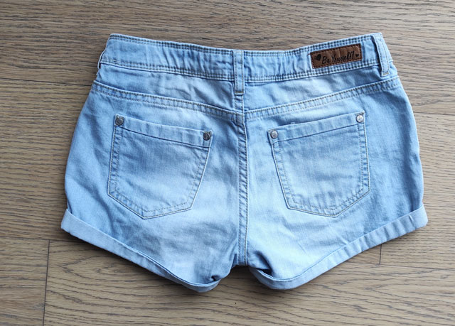 Letné riflové kraťasky, málo nosené, veľmi dobrý stav. pás v kľude 33 cm ( v páse posuvná gumička), D 23 cm