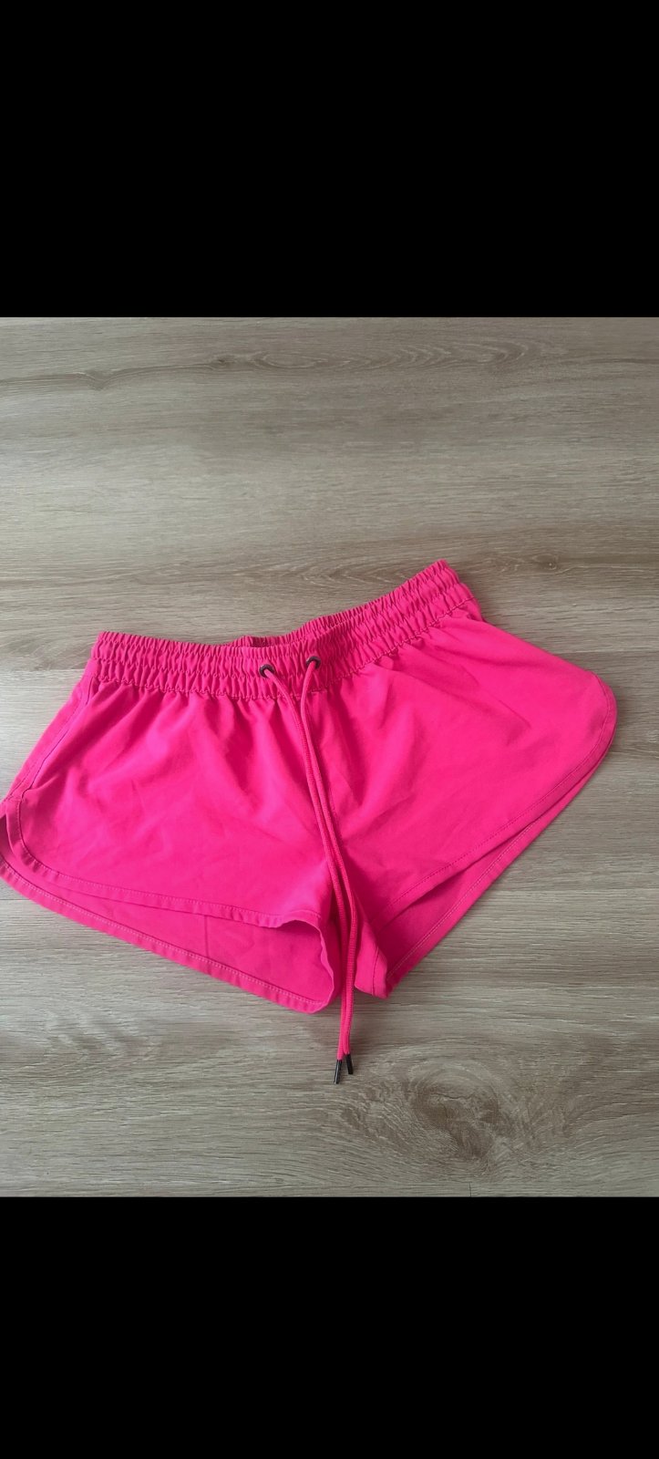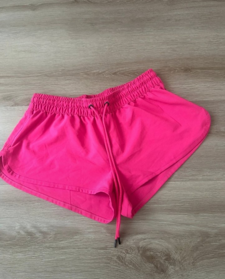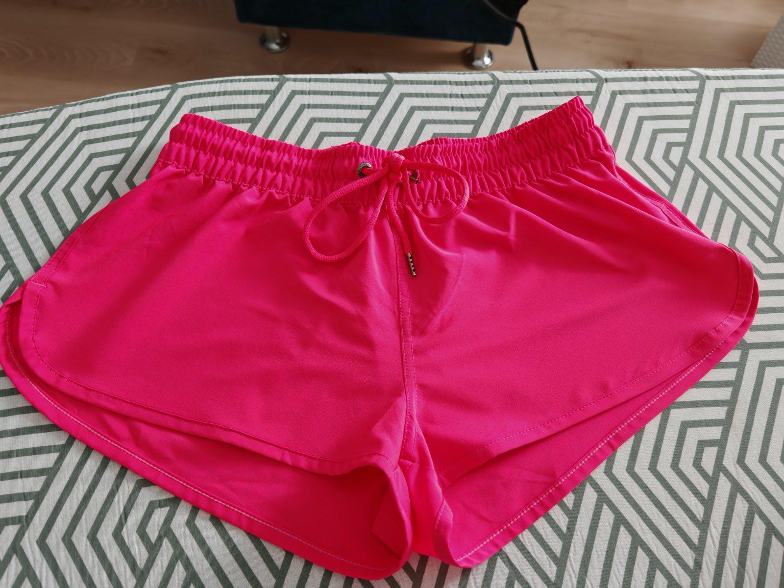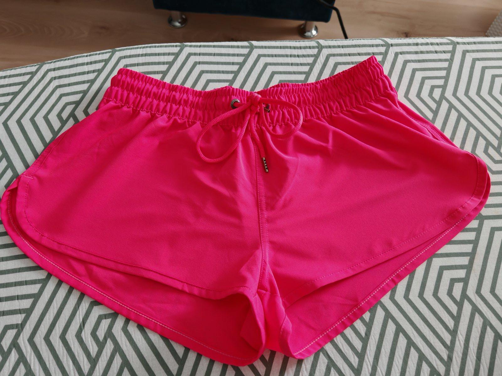 Elegantné šortky. Kvalitný jemne elastický materiál. Krásna výrazná farba. V predu trochu zmolky akoby, viď foto. Veľkosť 32, sedí na xs-s