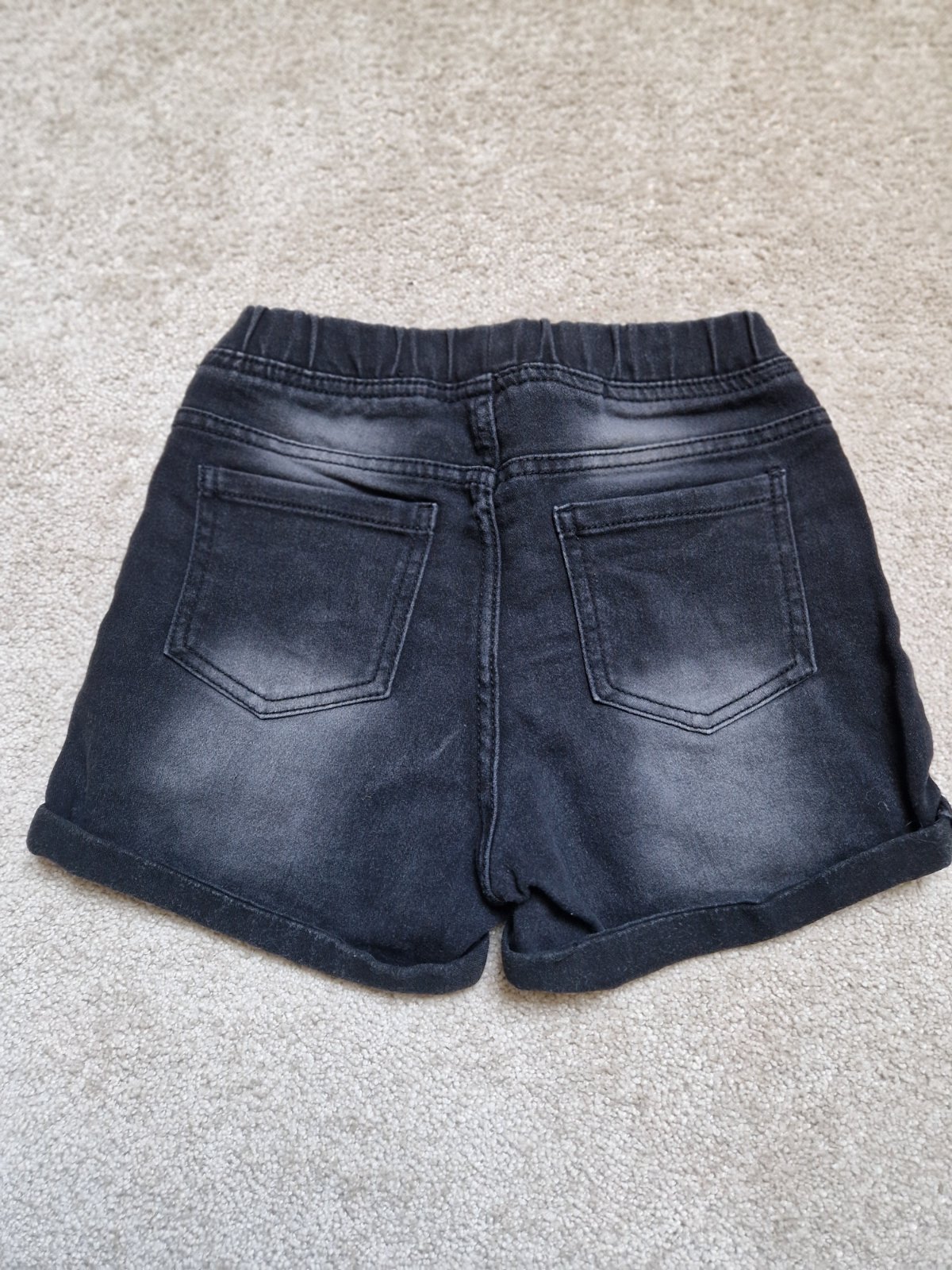 Čierne pekne suchane sortky 146. Nie su také fľaky, ako fotí ( zle mi fotí tmavé farby fotak) . Pás elastický, 60cm. . Veľmi dobre padnú na postave.