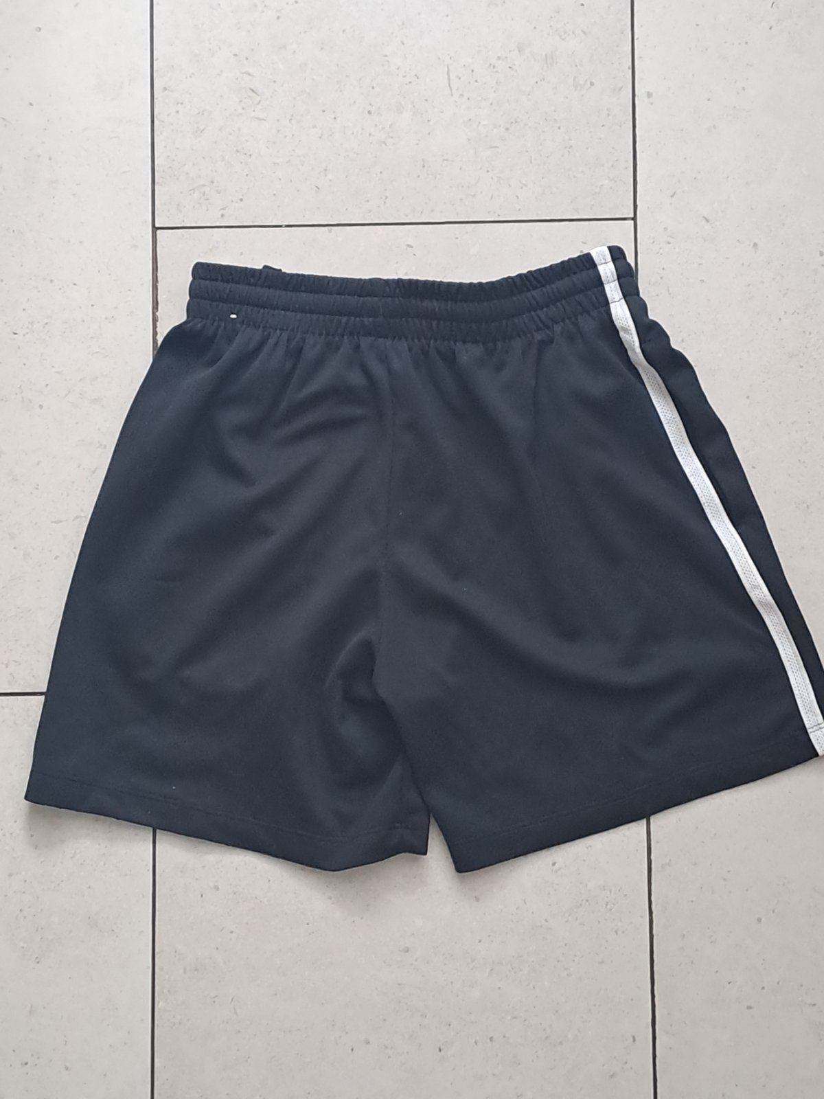 Originál kraťasy 128 - 140, v páse je guma aj šnúrka, po bokoch vrecká. Čierne so zlatým lemovaním a logom. Syper stav až na fliačik vzadu. Tenký príjemný materiál