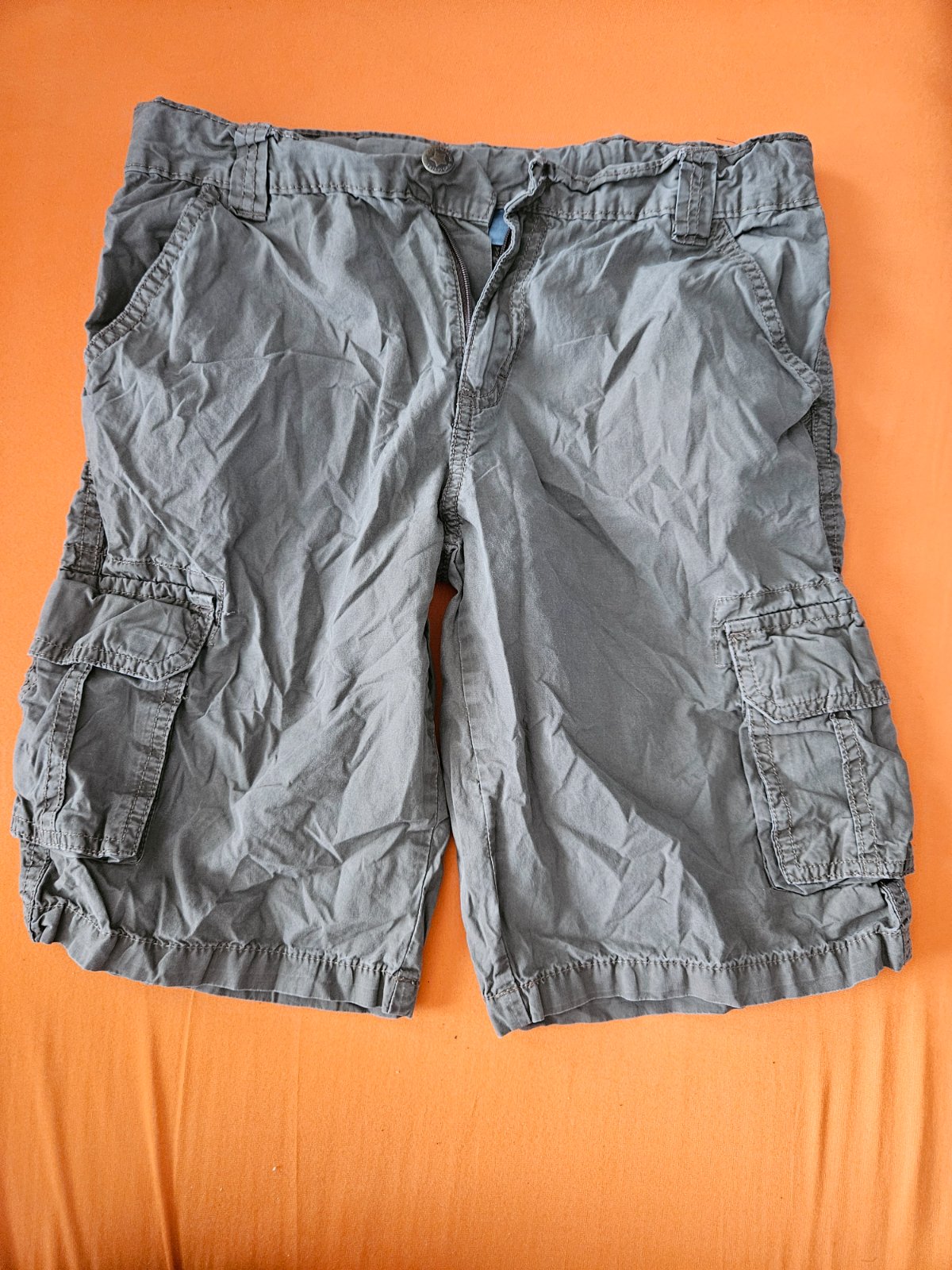 Chlapčenské dlhšie šortky, tenkej pevnej látky. Písaná je veľkosť 12. V predu dve kapsy, vzadu jedna a na kolene jedna tajná. 100% stav.