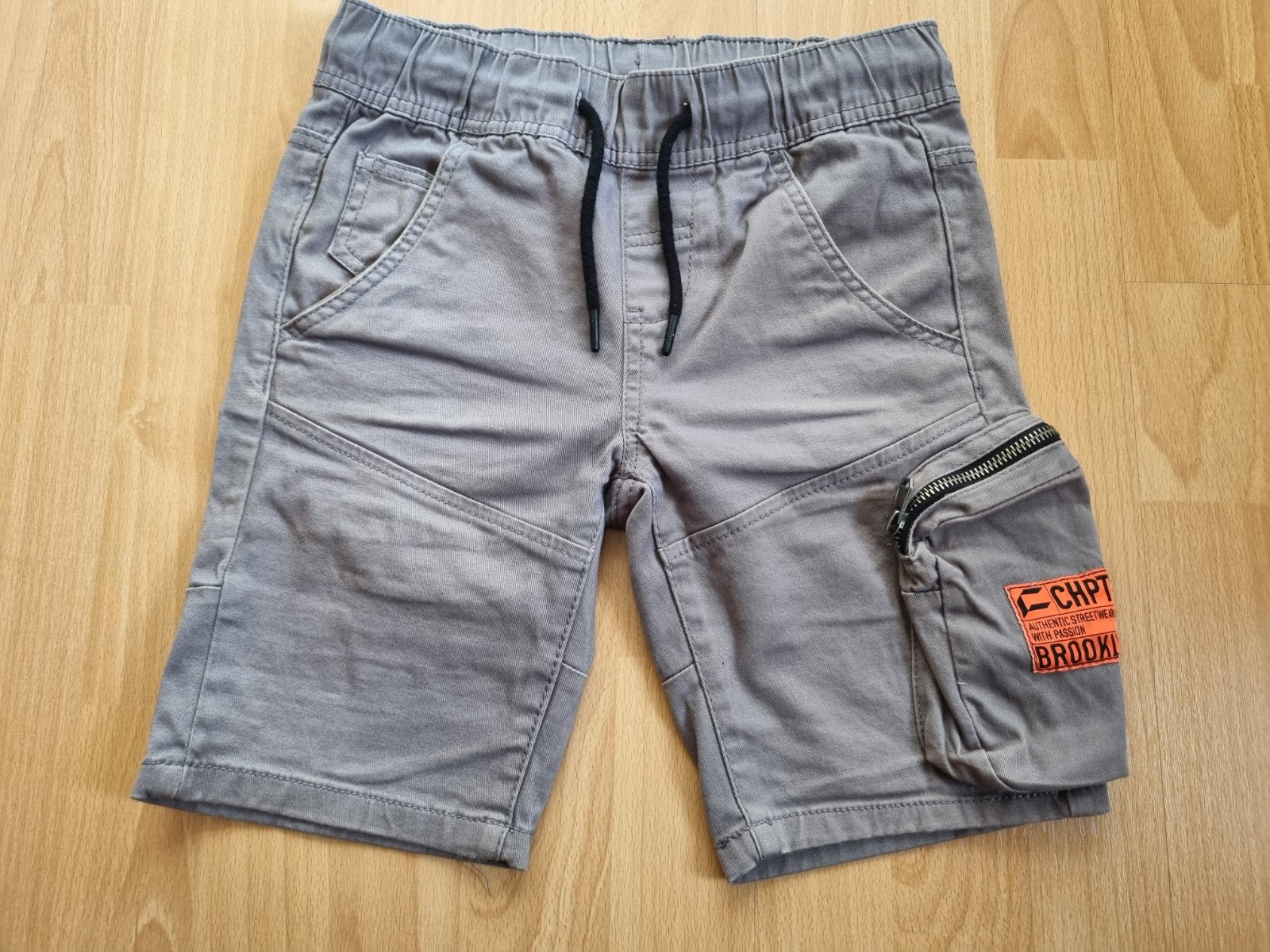 Detské kraťasy značky Chapter Young, veľkosť 140 (9-10 rokov), s bočným vreckom na zips. Dĺžka 41 cm, obvod pása 68 cm - dá sa natiahnuť, je na gumu. Boli nosené, sú v dobrom stave.