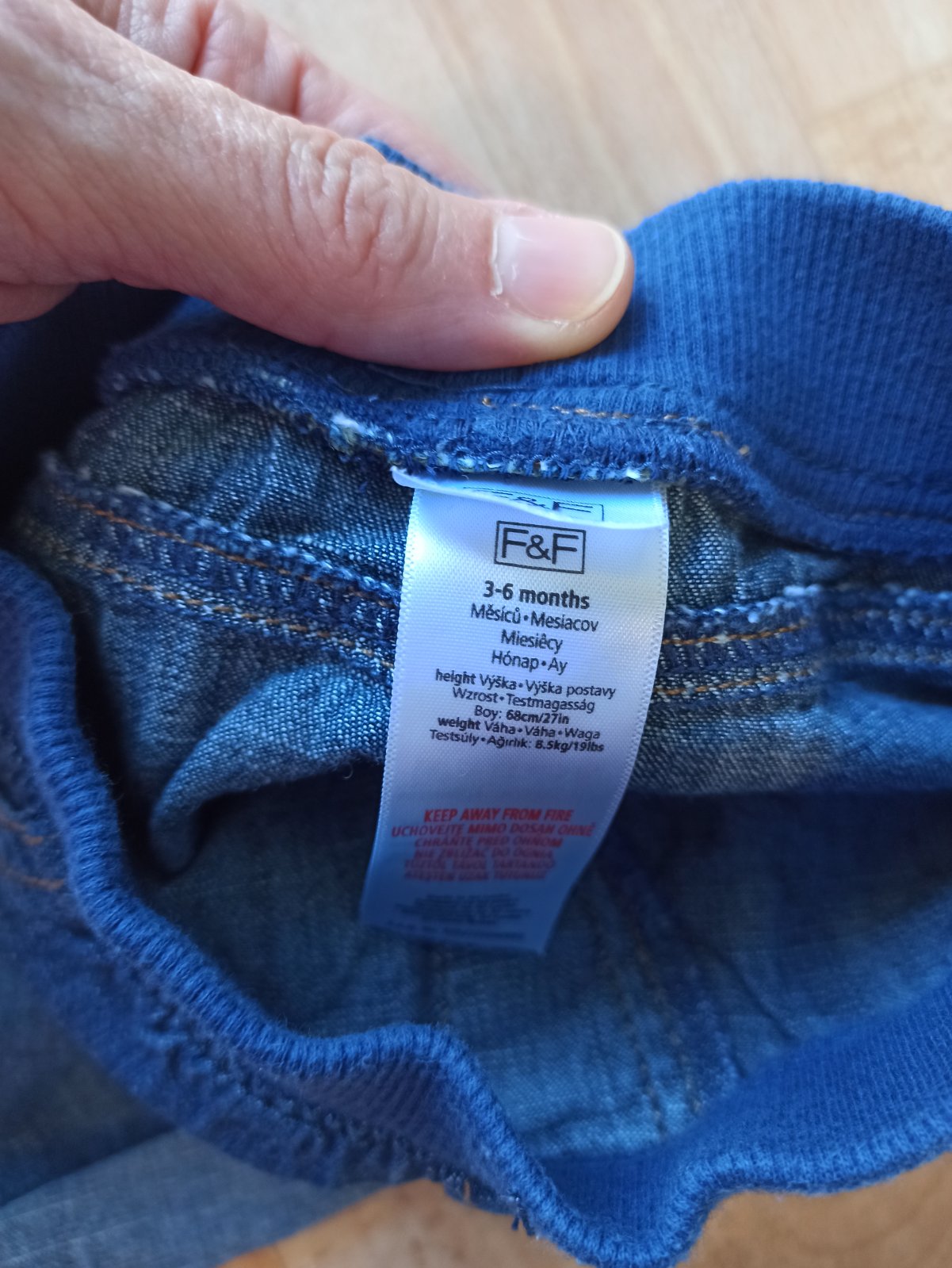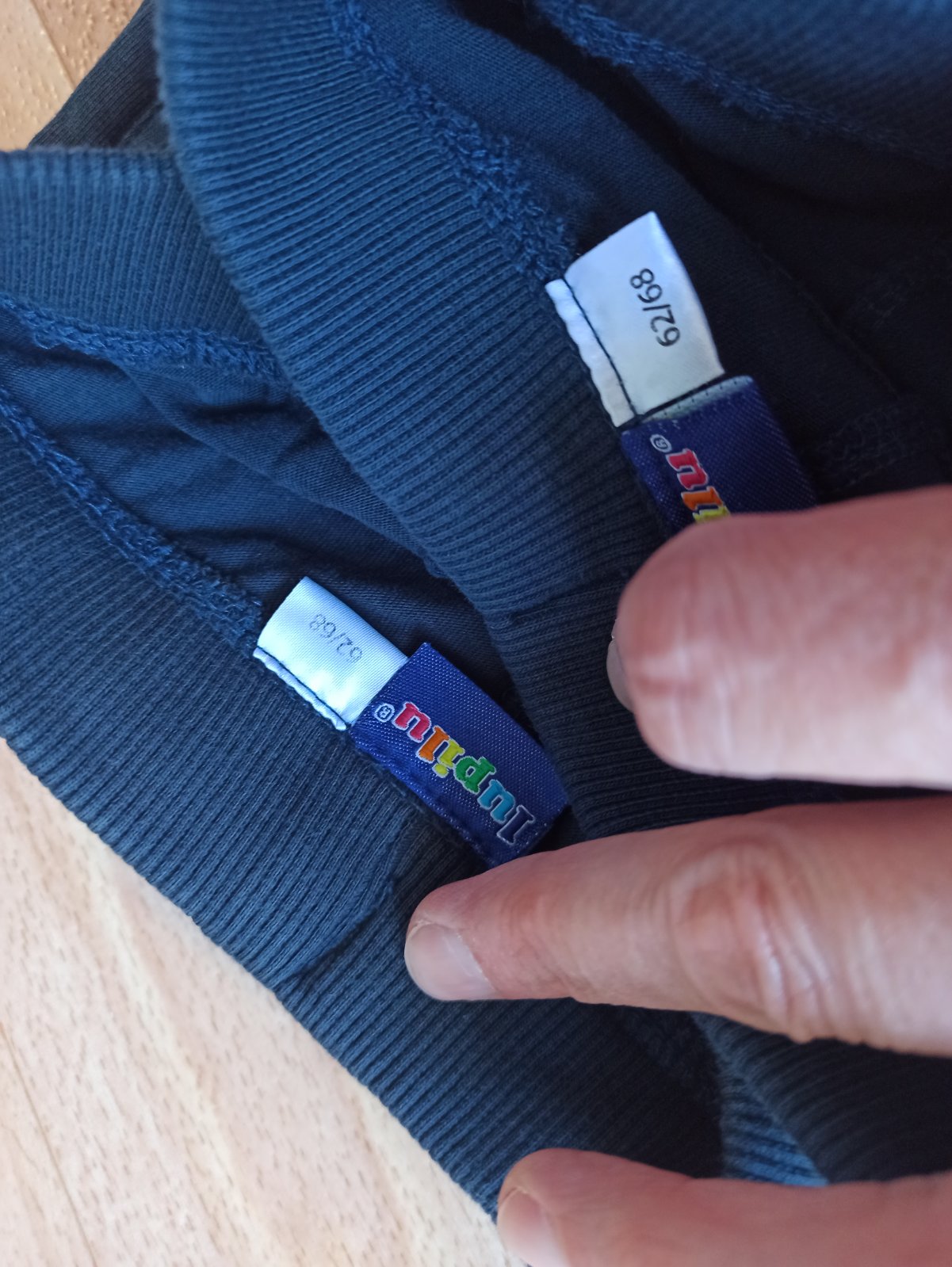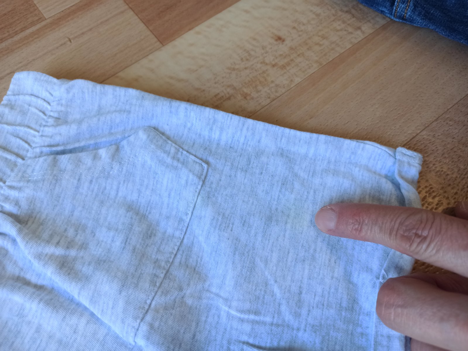 Jedny tmavomodré sú len opraté a nenosené. Sivé a bledšie modré sú možno 2krát oblečené. Na sivých som si pri fotení všimla veľmi slabo viditeľný fliačik, podľa mňa pôjde oprať - viď foto