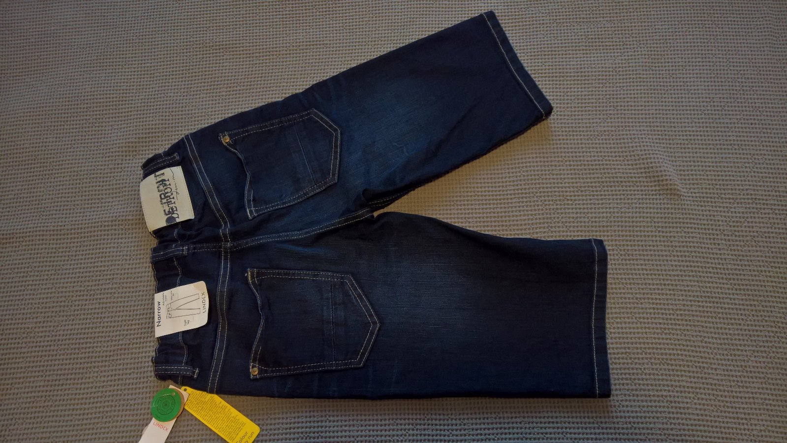 Krátke riflové nohavice v 100% tnom stave. Nenosené, syn pribral, a už mu boli cez stehna úzke. Rozmery: pás vkľude 28cm - natiahne sa aj na 36cm, pás regulovateľný posuvnou gumičkou s gombíkmi...šírka cez stehno 22cm...dĺžka 49,5cm.