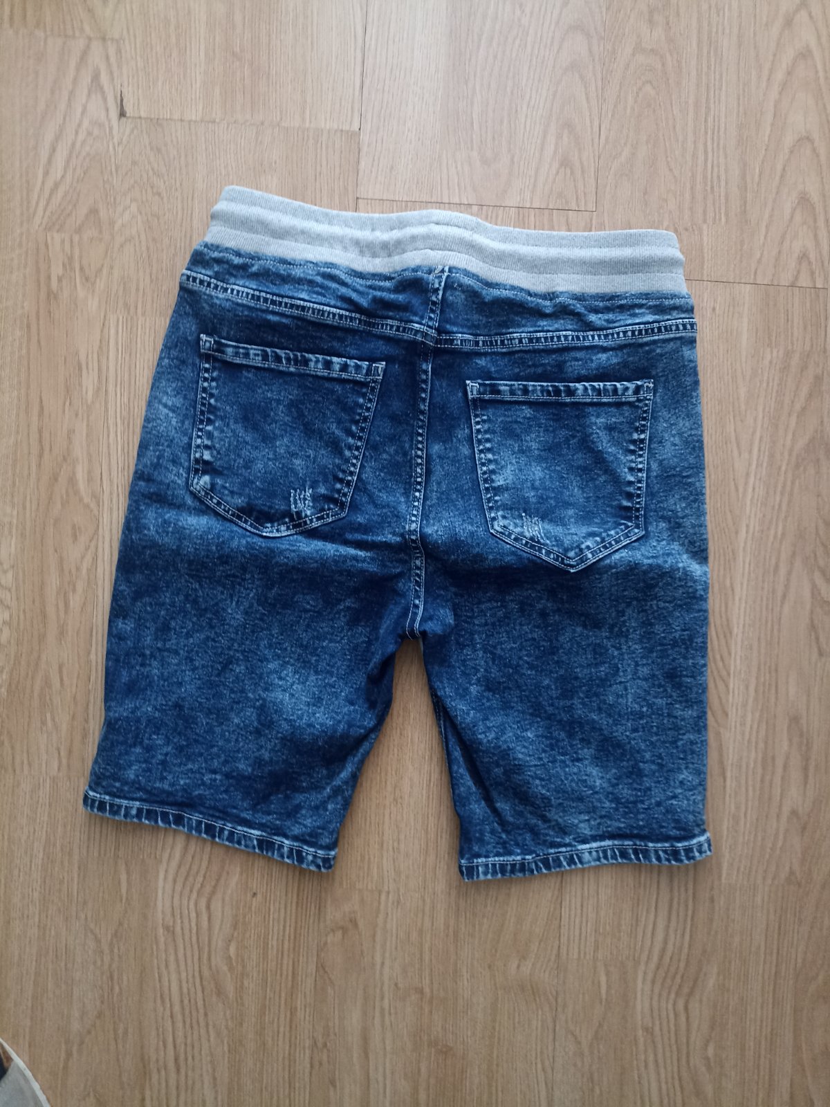 Riflové kraťasy, v páse je šnúrka, tak dajú sa stiahnuť, nepoškodené, vo veľmi dobrom stave, na výšku 170 CM.