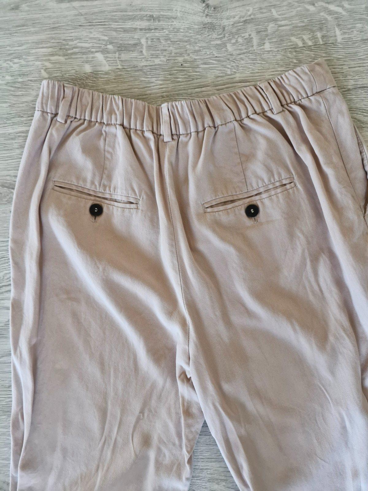 Predám bledoružové dámske 3/4 nohavice. Sú bez pevného pásu, so zapínaním na zips. Veľmi pekne formujú postavu. Dole majú manžetu na boku s gombíkom. Sú mierne elastické. veľkosť: 38 značka: Linate...
