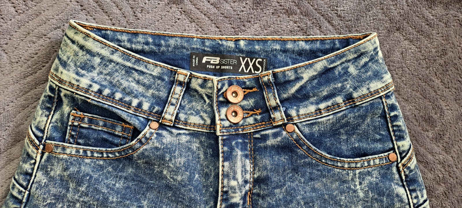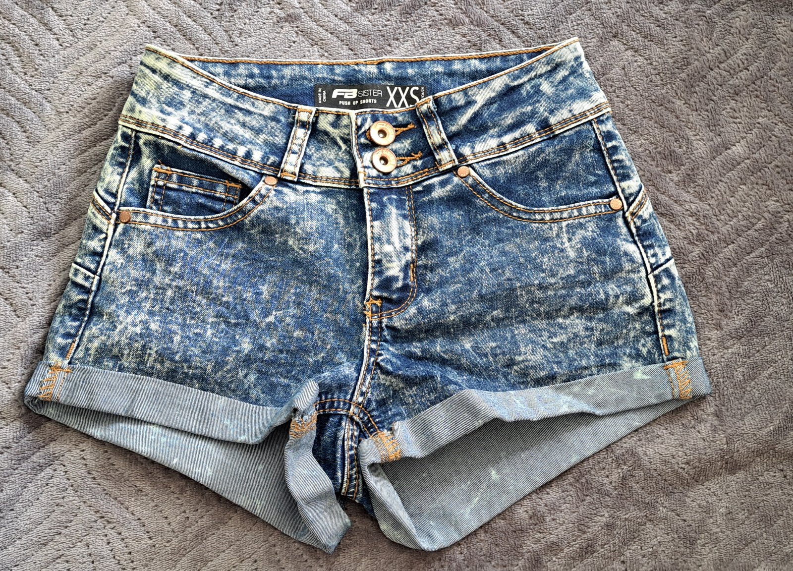 Modré rifľové kraťasy s výrazným spraným efektom PUSH UP SHORTS