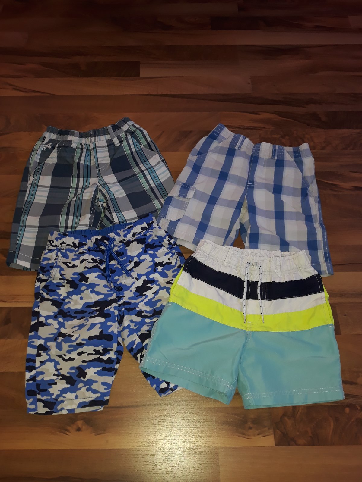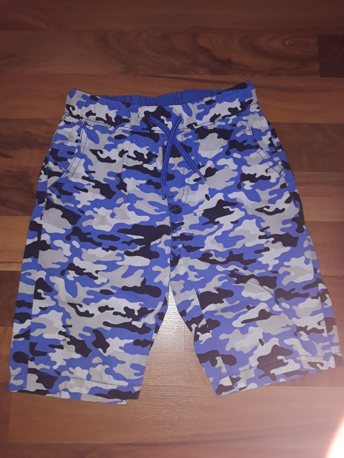 4 ks tenkých kraťasov rôznych značiek a veľkostí. Sedia na veľkosť 110/116. Lupilu kraťasy zužované, syn je štíhlej postavy. Pekný nosený stav bez poškodení.