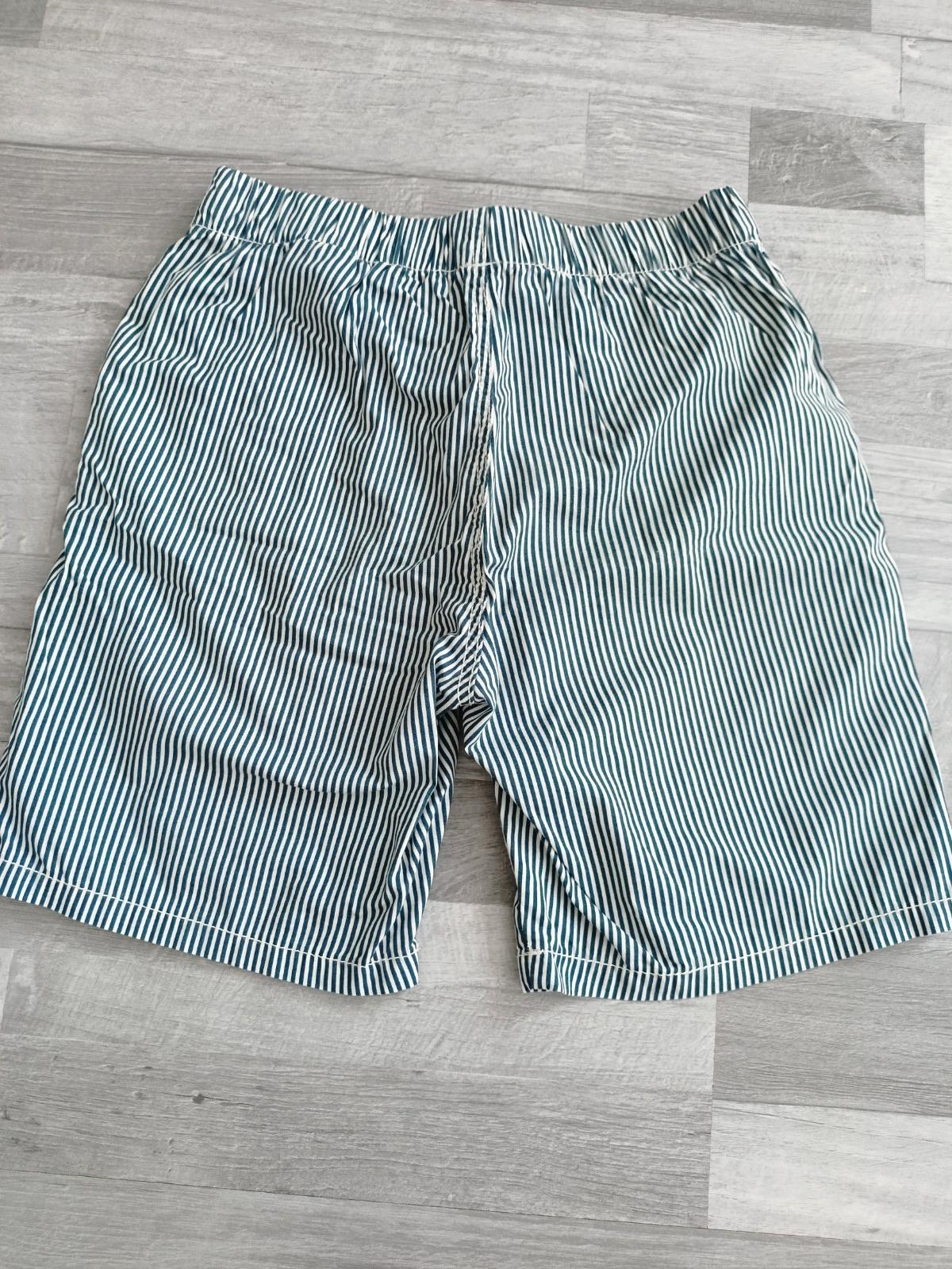 Kraťasy sú bez poškodenia,boli málo nosené. Majú tmavomodré pásiky.