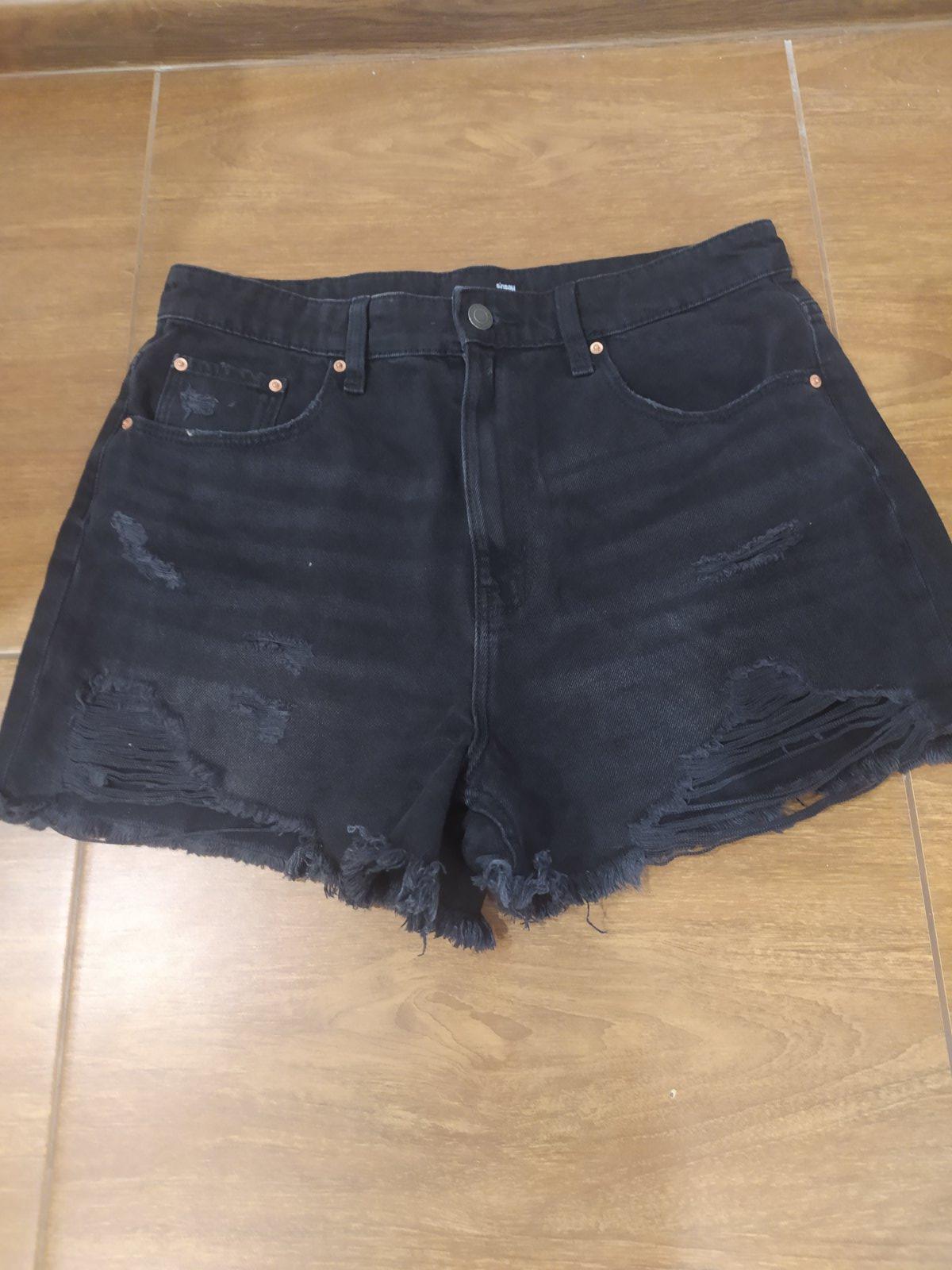 Predám pekne riflové kraťasy nad kolena ciernej vyšuchanej farby bez poskodenia cena 6e plus posta