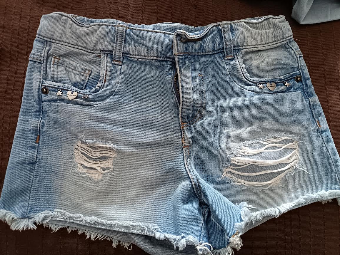 - riflové kraťasy - kupované v Cropp veľkosť XS - 34, sú elastické asi 2x oblečené. Dlžka - 30cm