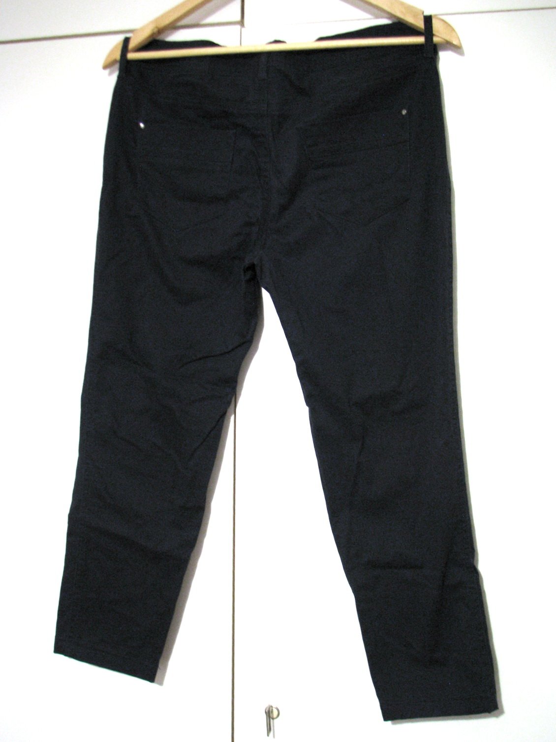 Letné bavlnené trojštvrťové nohavice tmavomodrej farby. Výborne zachovalé, bez poškodení, nevyšúchané. Materiál pravdepodobne bavlna, štítok chýba. Veľkosť 38, v prípade záujmu premeriam.