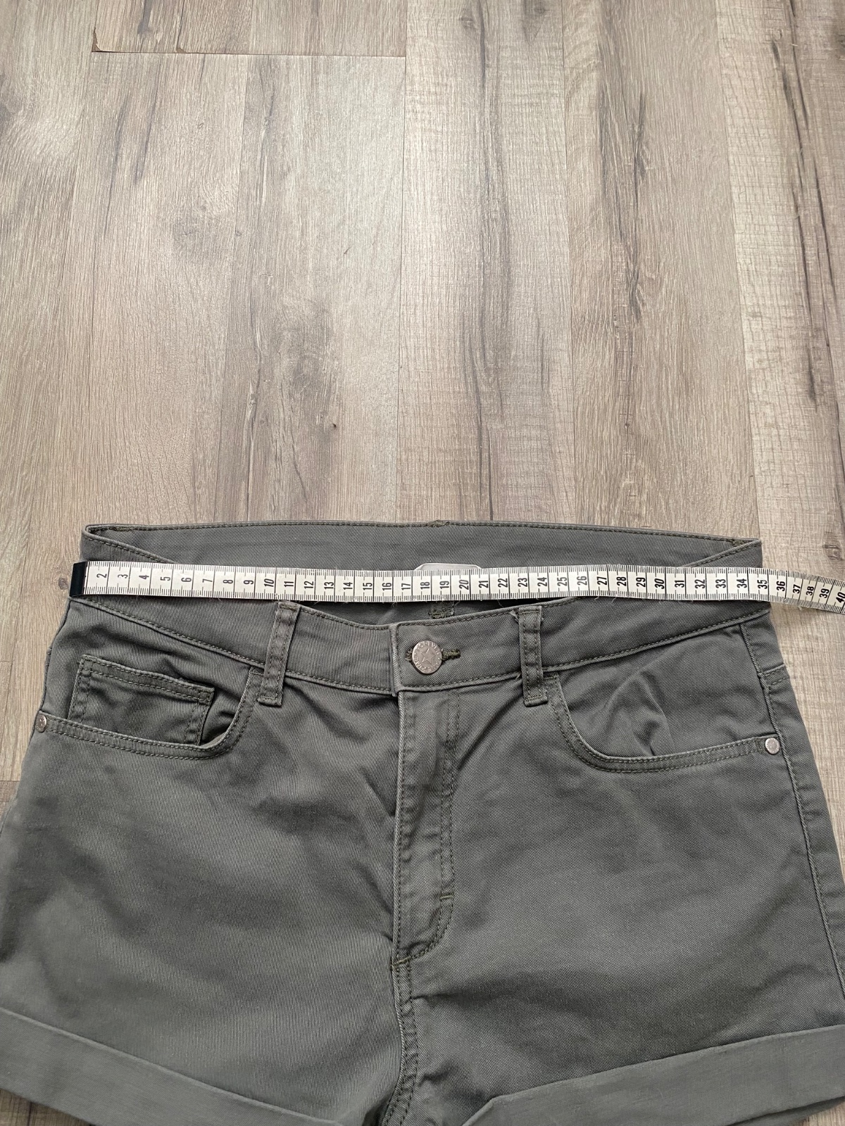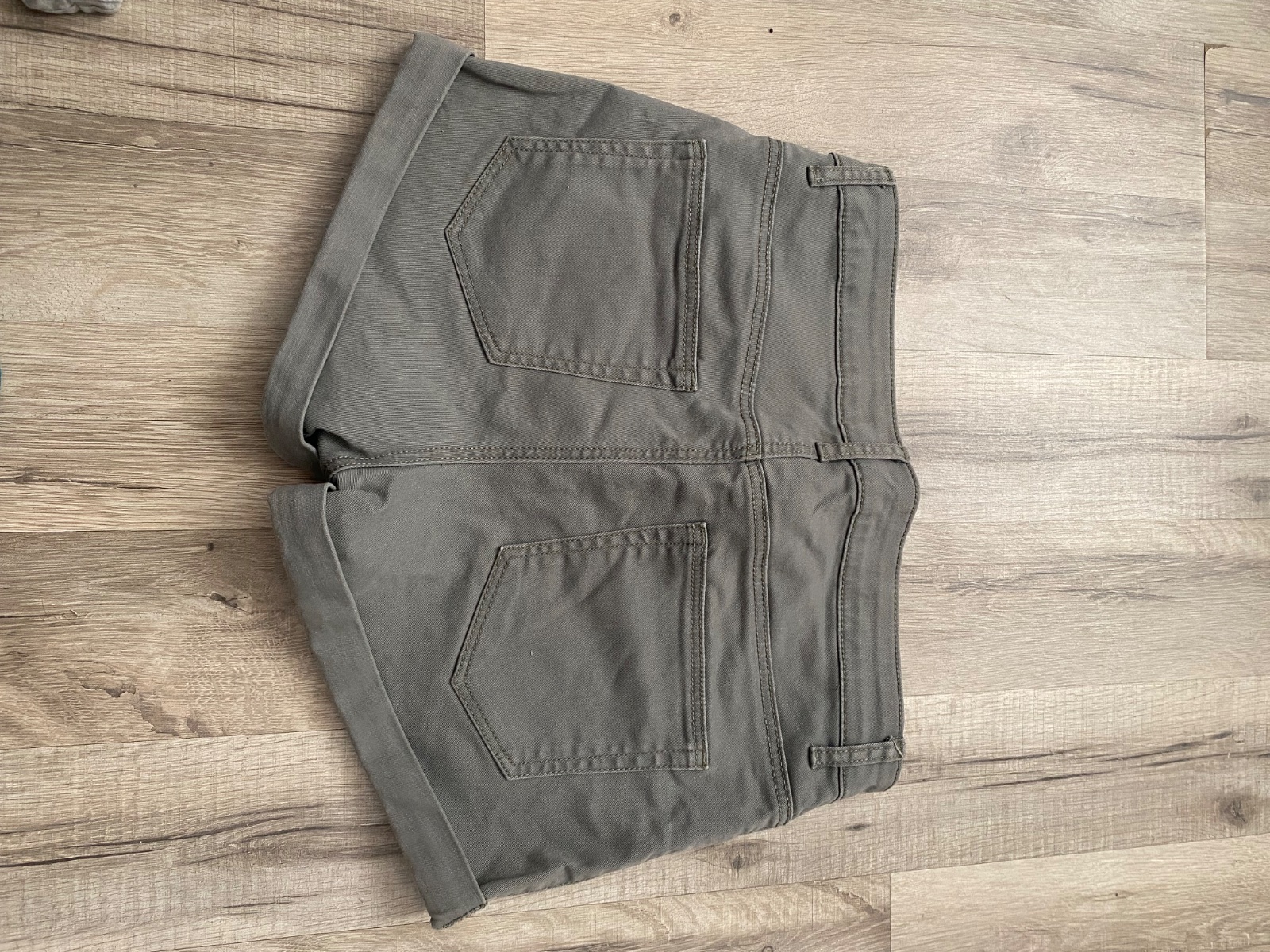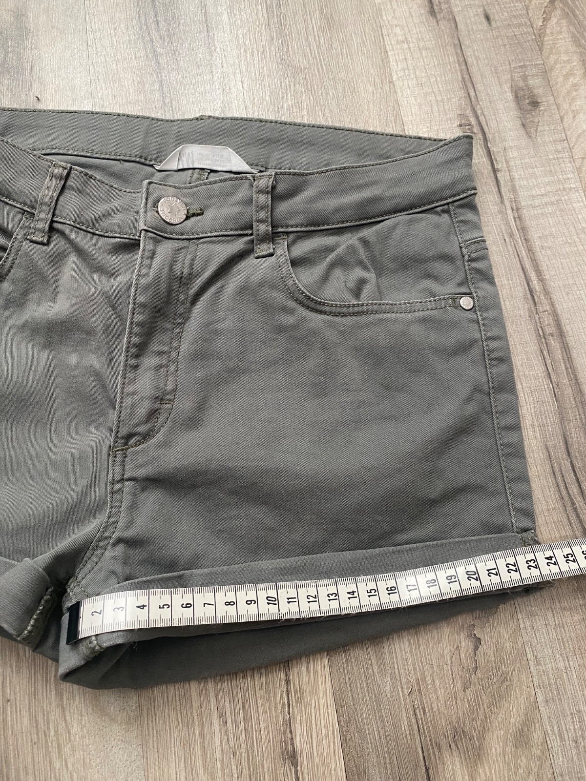 Kaki šortky, značka H&M, veľkosť sedí na XS. Rozmery na foto. Nosené minimálne, bez poškodení. Cena 4€ + poštovné
