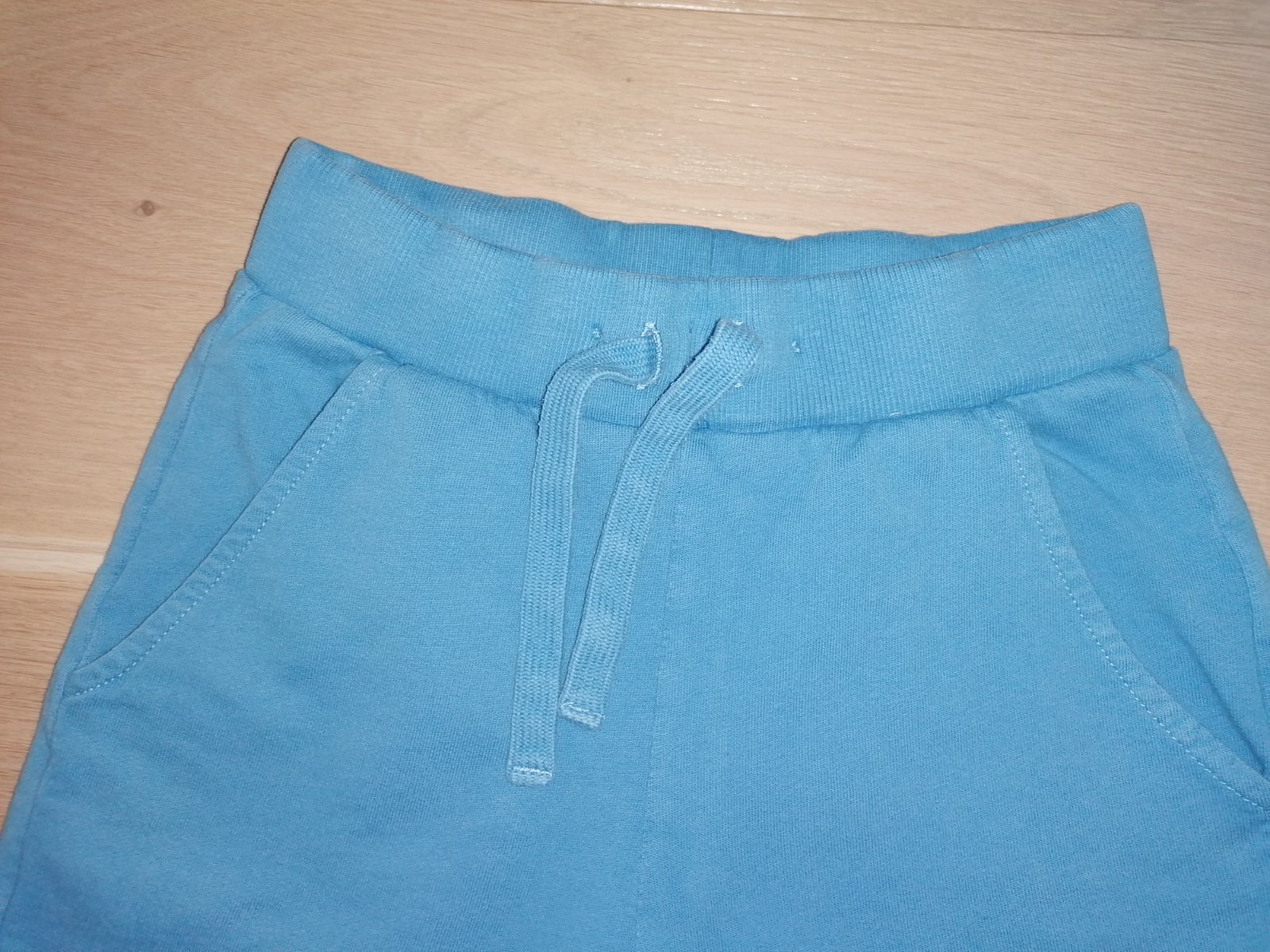 Teplákové kraťasy zn. Lindex veľ. 110/116, 100% bavlna, pás na gumu, šnúrky iba ozdobné, v páse regulácia, vpredu dve vrecká.