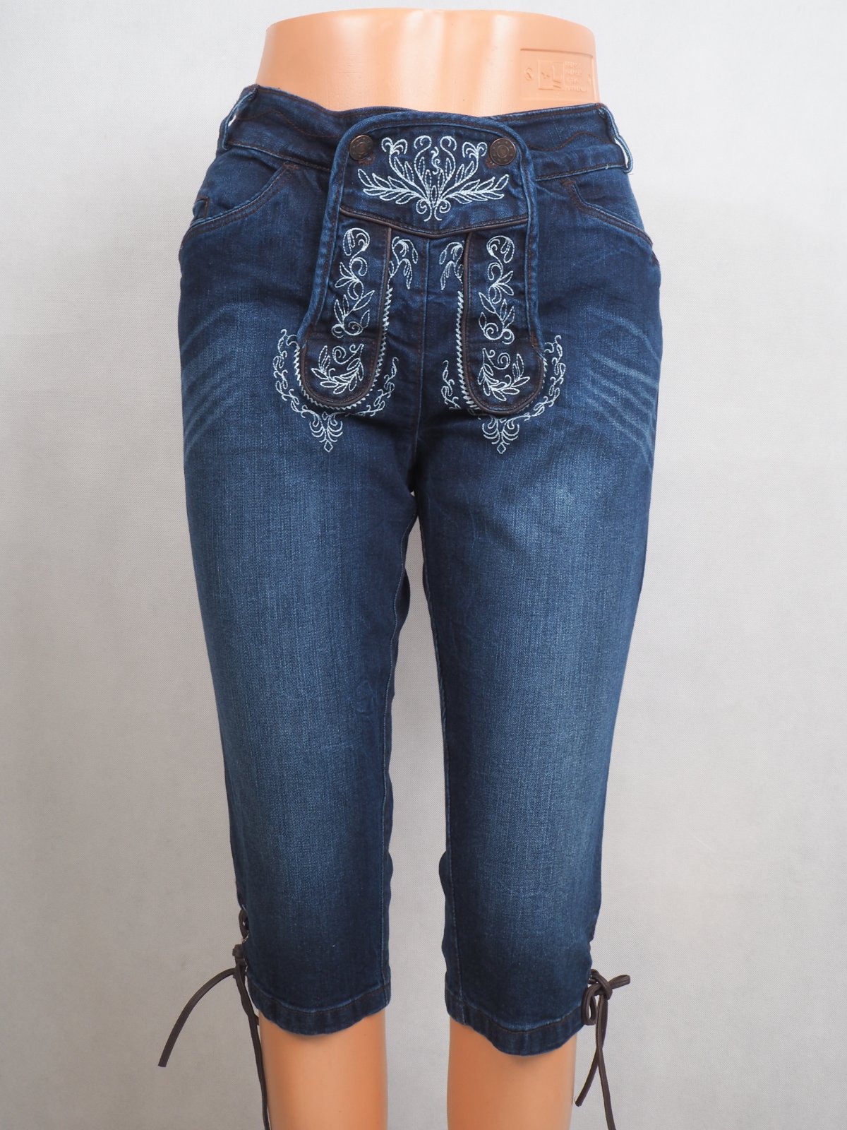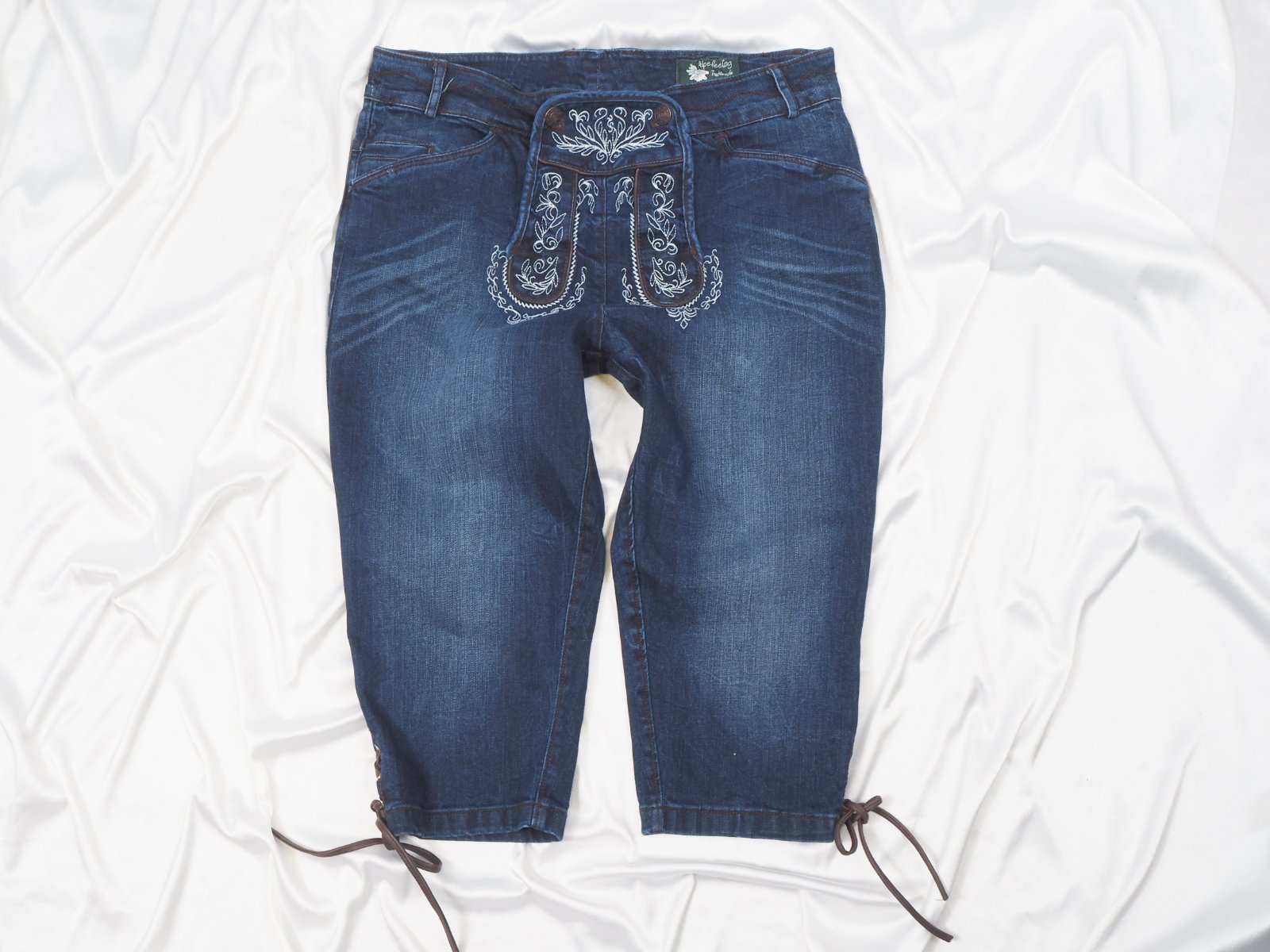 Kvalitné tmavomodré riflové krojové kraťasy, veľ. 38/40, zapínanie na gombíky, materiál 98% bavlna, 2% elastan, super stav.