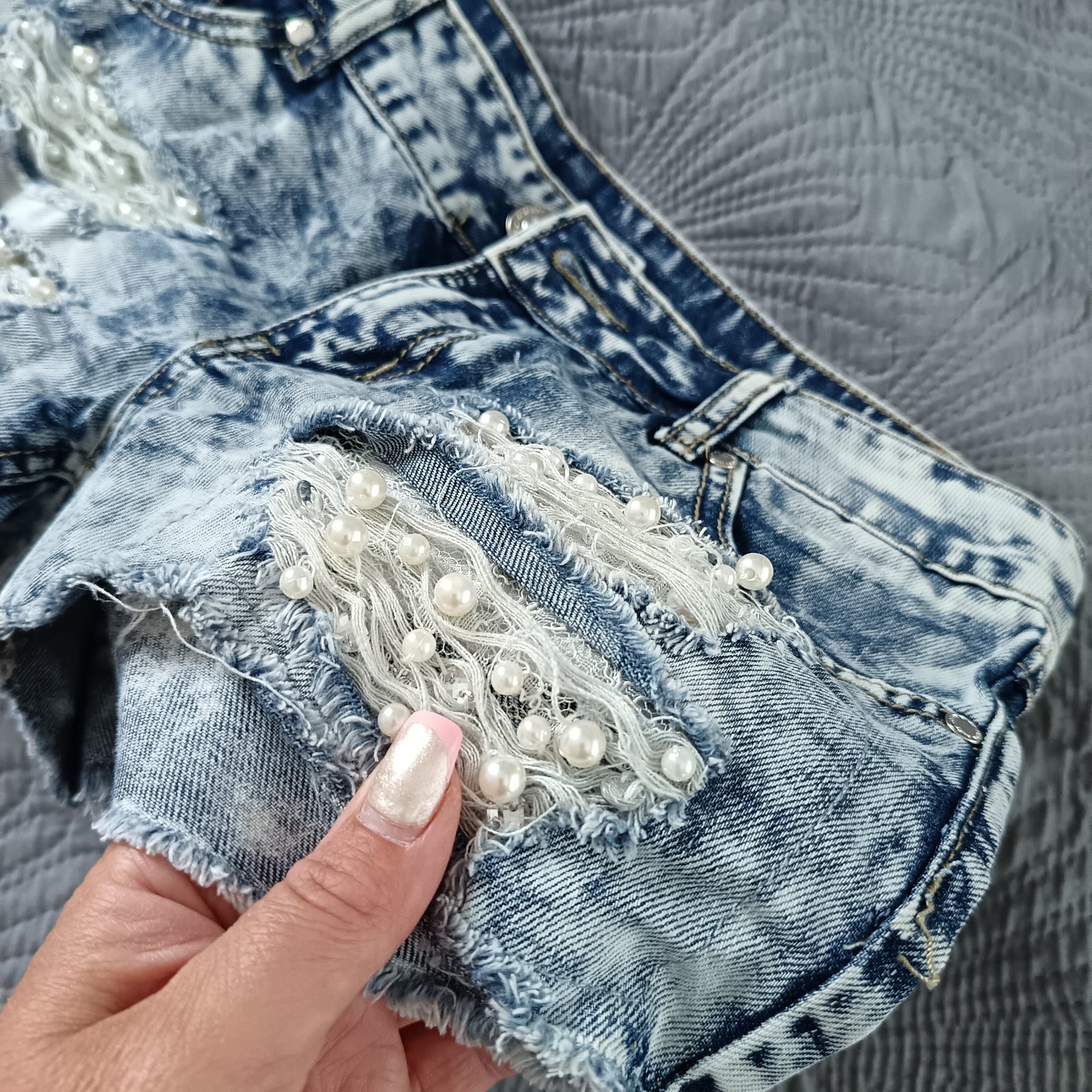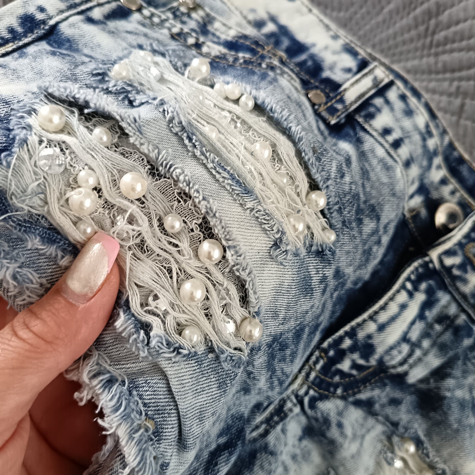 Predám nádherné rifľové kraťasy so šperkami.