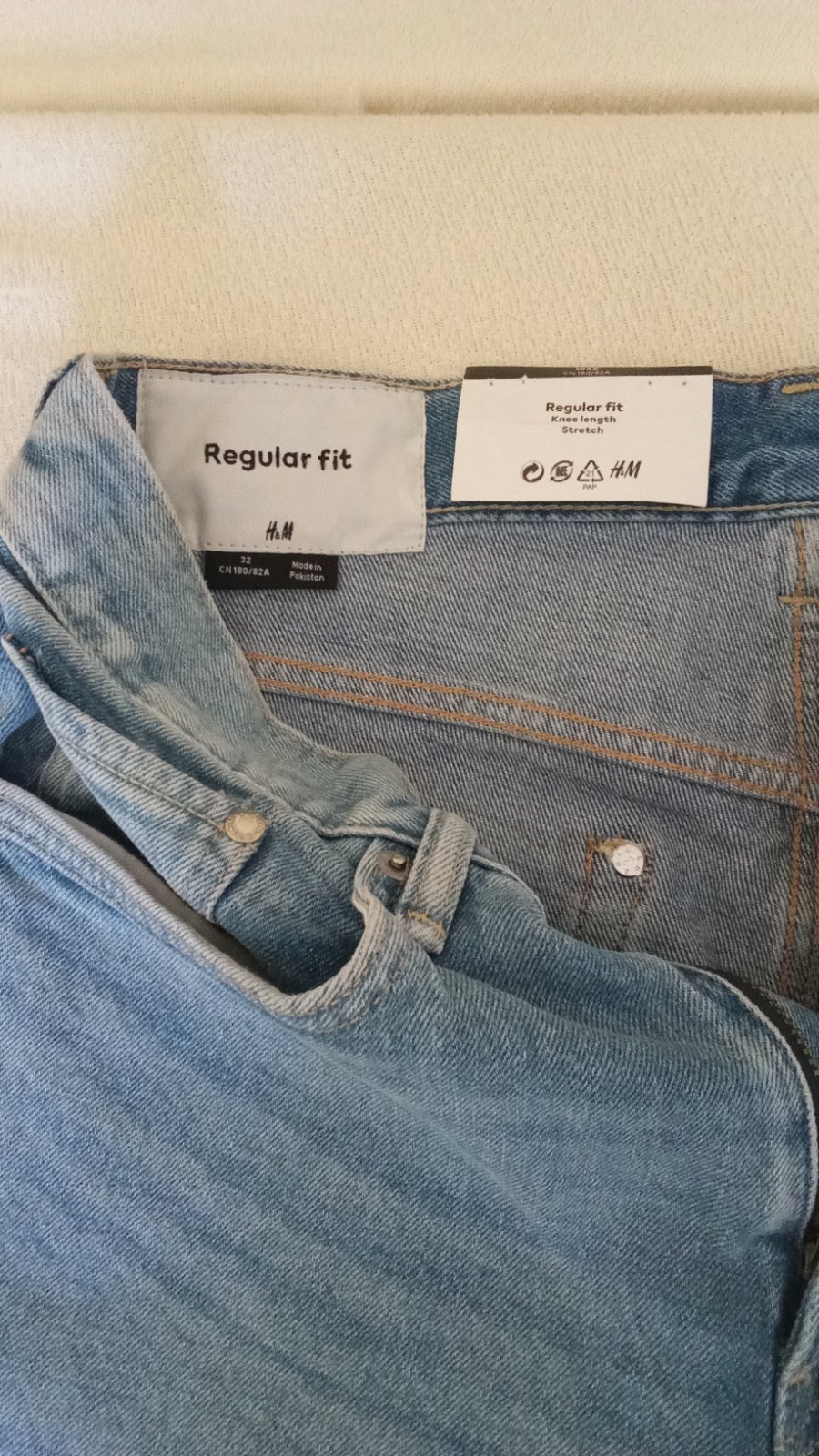 Veľ.W 32. Regular fit. Knee length Stretch.