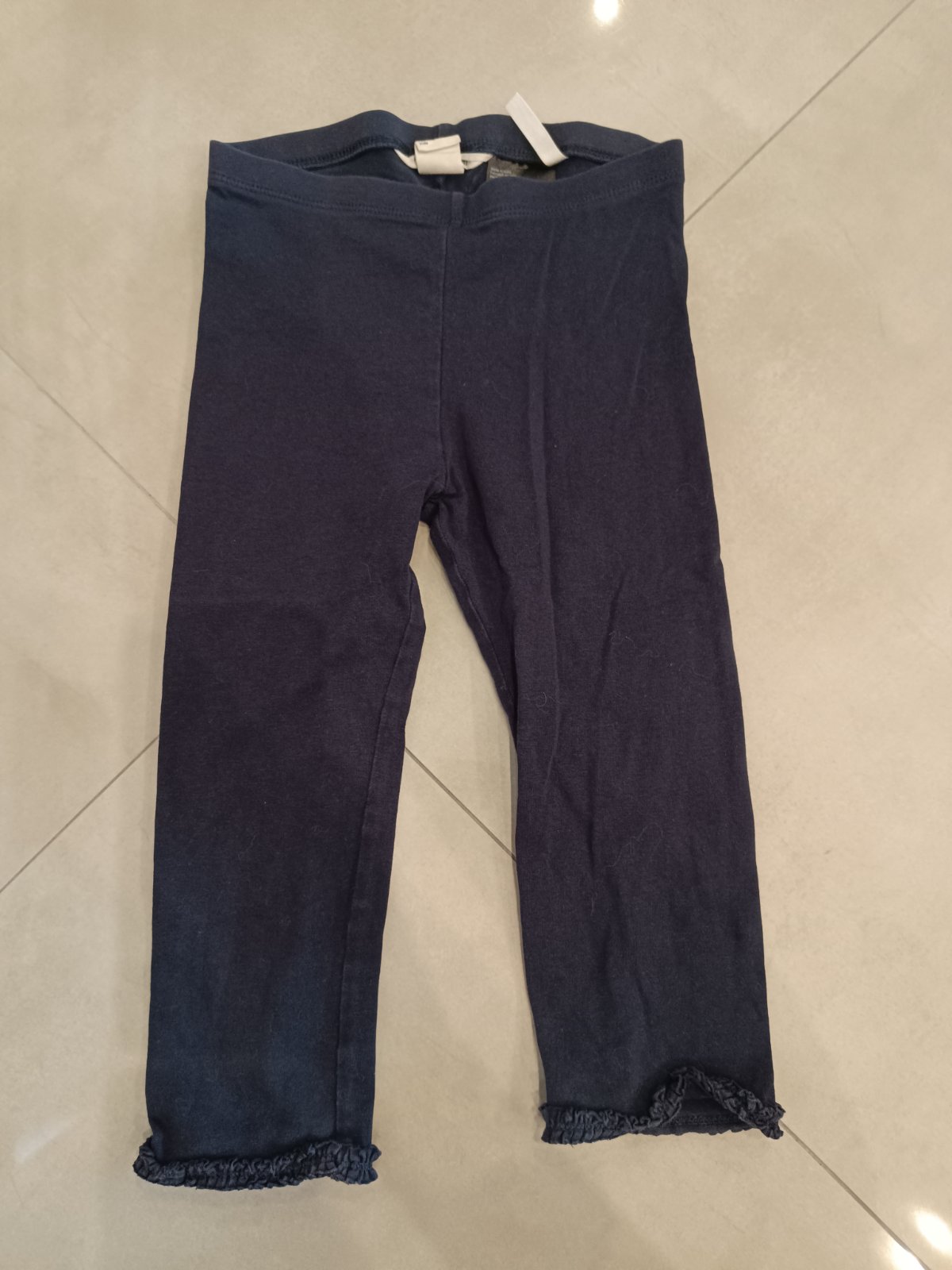 Dvoje 3/4. Tmavomodré sú H&M, písané 128, sedia ako 122. Cena spolu.