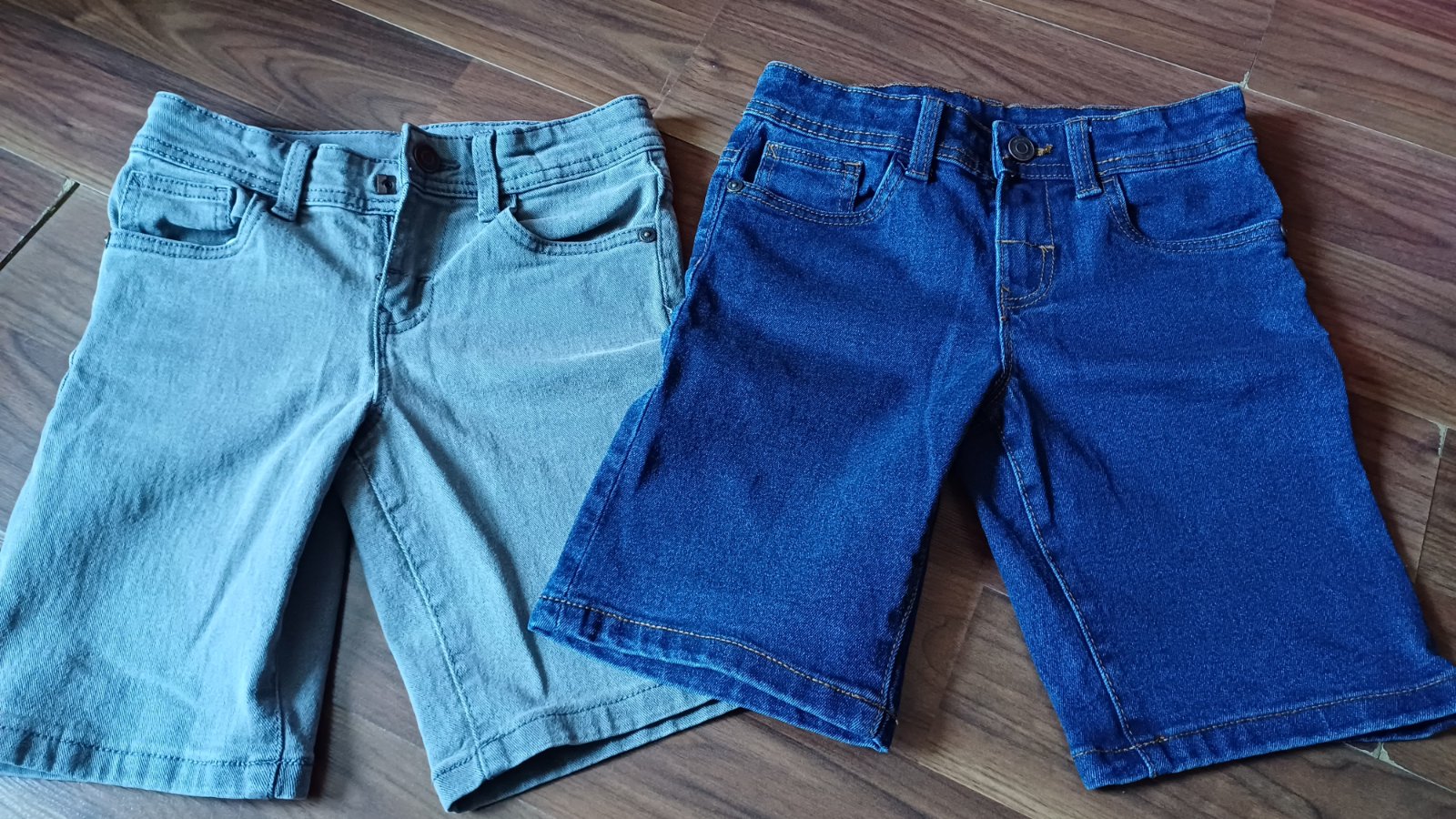 Takmer nenosené rifľové kraťasy, čiže zánovný stav. Cena spolu.