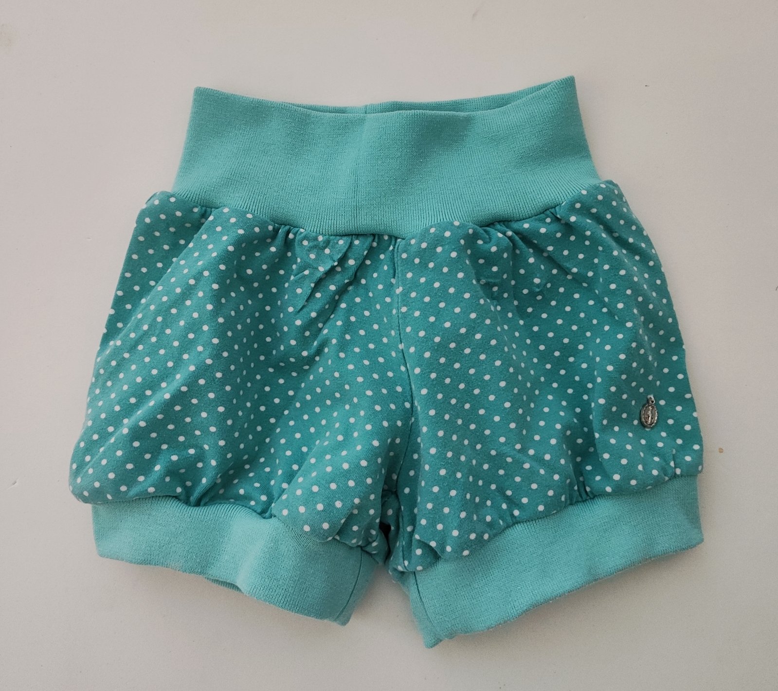 Doma kvalitne ušité nohavice,už je trošku farba vyblednutá.V pase je gumička. pas 18 cm, dížka 28 cm.