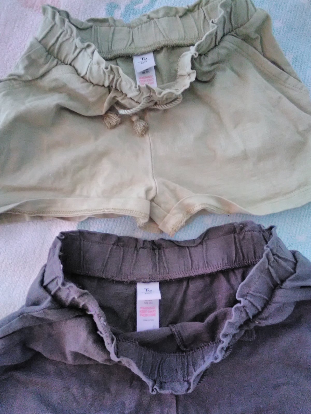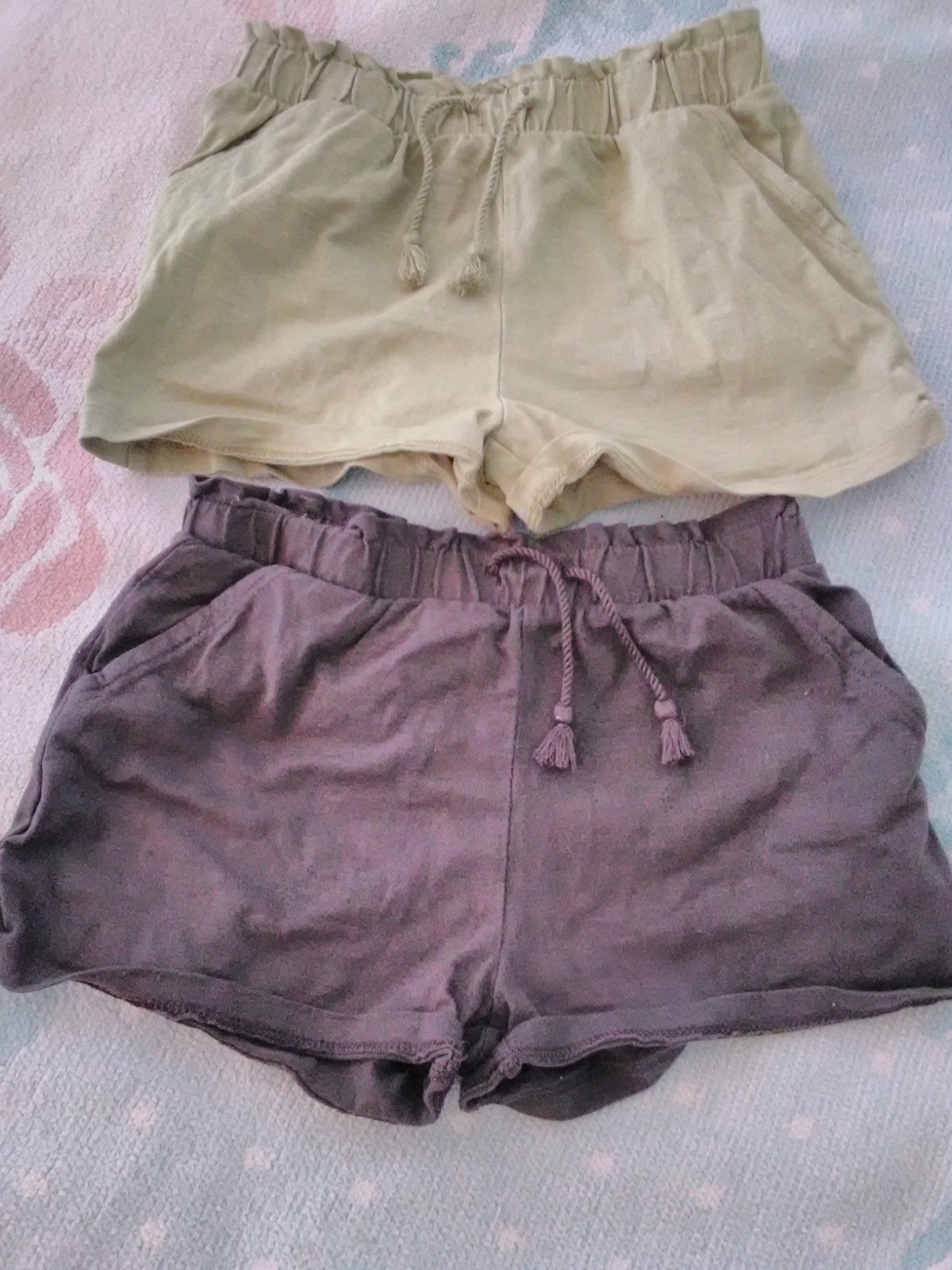 2kusy kratasov sivé a olivovo zelené na gumky s vreckami. Pekný zachovalý stav.