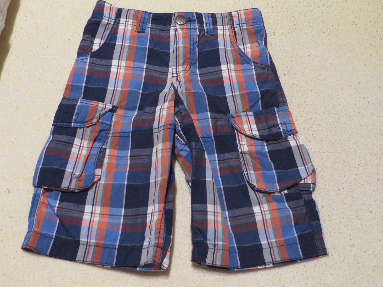 Predám chlapčenské 3/4 kraťasy. Nohavice majú regulovateľný pás, sú vo výbornom stave, pre chudšieho chlapčeka. Farba je modro-oranžová, značka TCM.