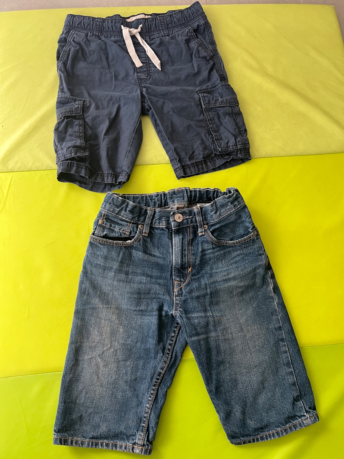 Predam nosene kratke nohavice znacky HM. Latkove su velkost 122, daju sa stiahnut snurkou, syn nosil skor ako 128. Riflove maju regulaciu v pase, velkost 128. Pekny noseny stav.